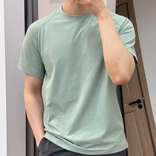 冰丝凉感训练服户外骑行情侣半截袖 美式 夏季 男款 雾霾蓝色速干短袖