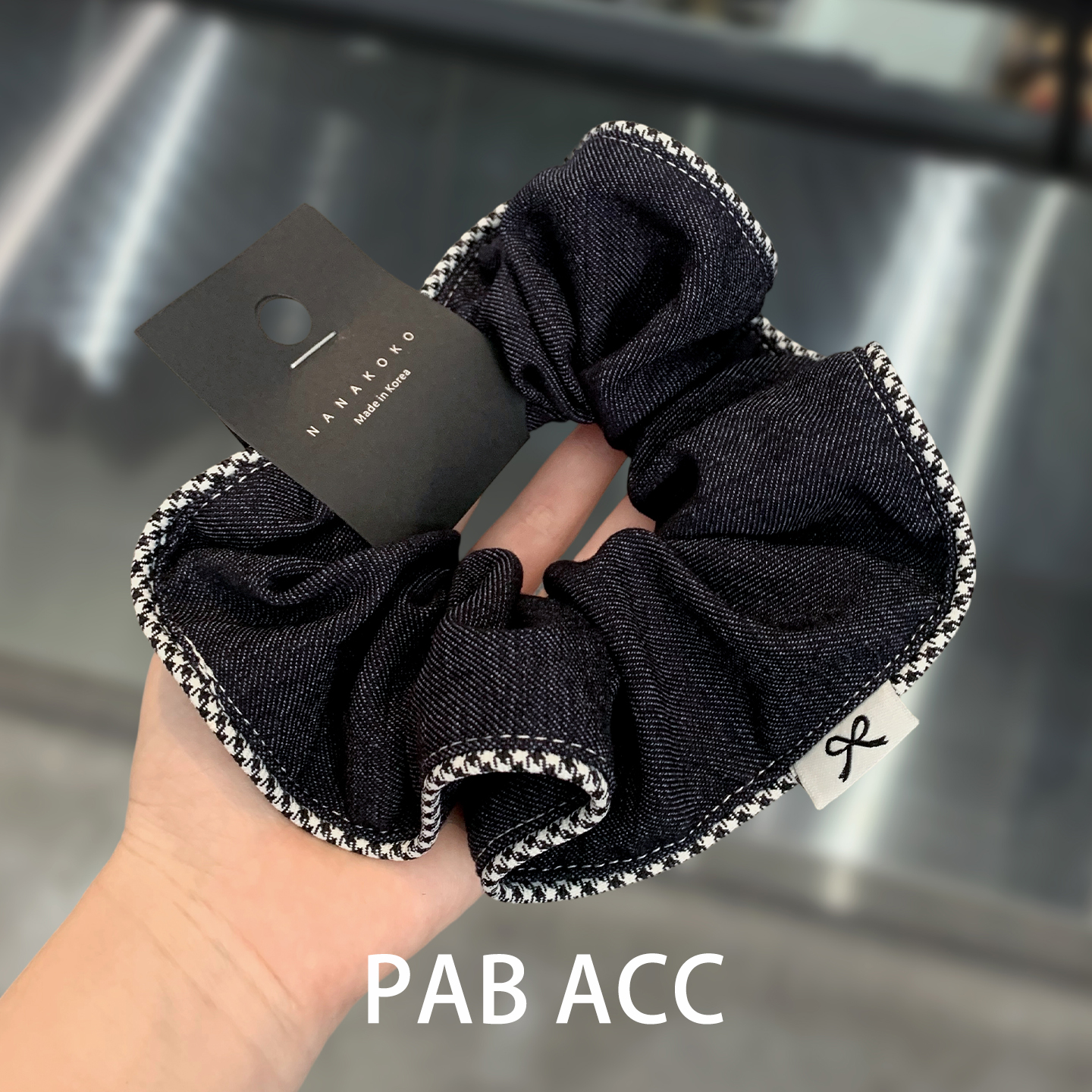 韩国新款 ins风简约百搭撞色藏蓝大肠发圈牛仔头绳扎低马尾橡皮筋