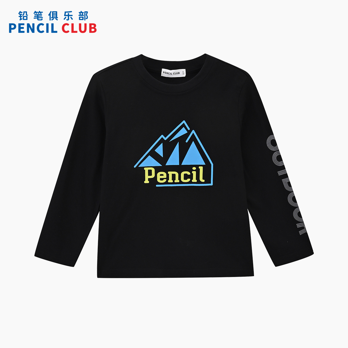 中大童圆领百搭上衣 男童T恤儿童印花长袖 铅笔俱乐部2025秋装 新款