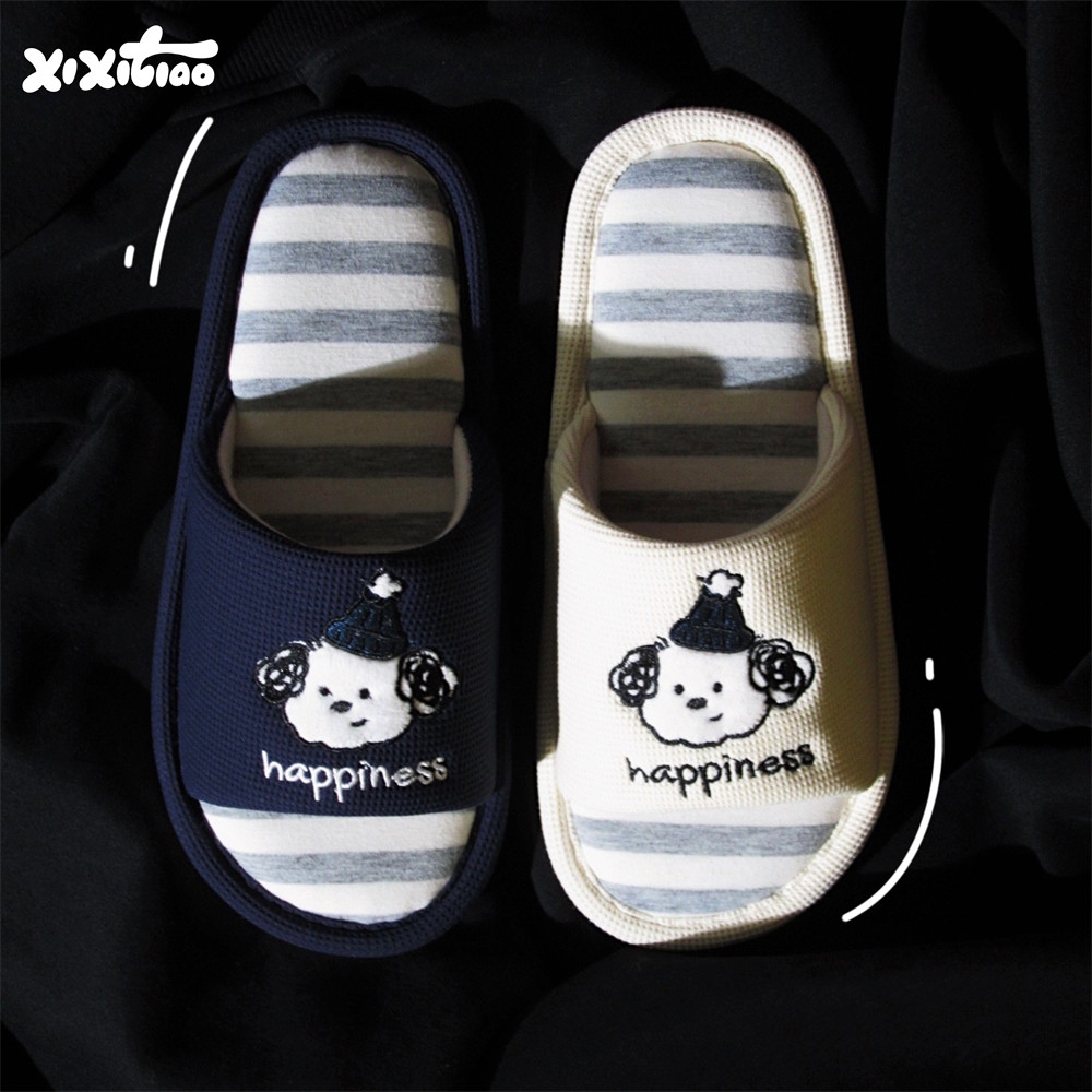 男女士居家地板鞋 趣味帽子小狗情侣2025新款 防滑卧室春夏棉麻拖鞋