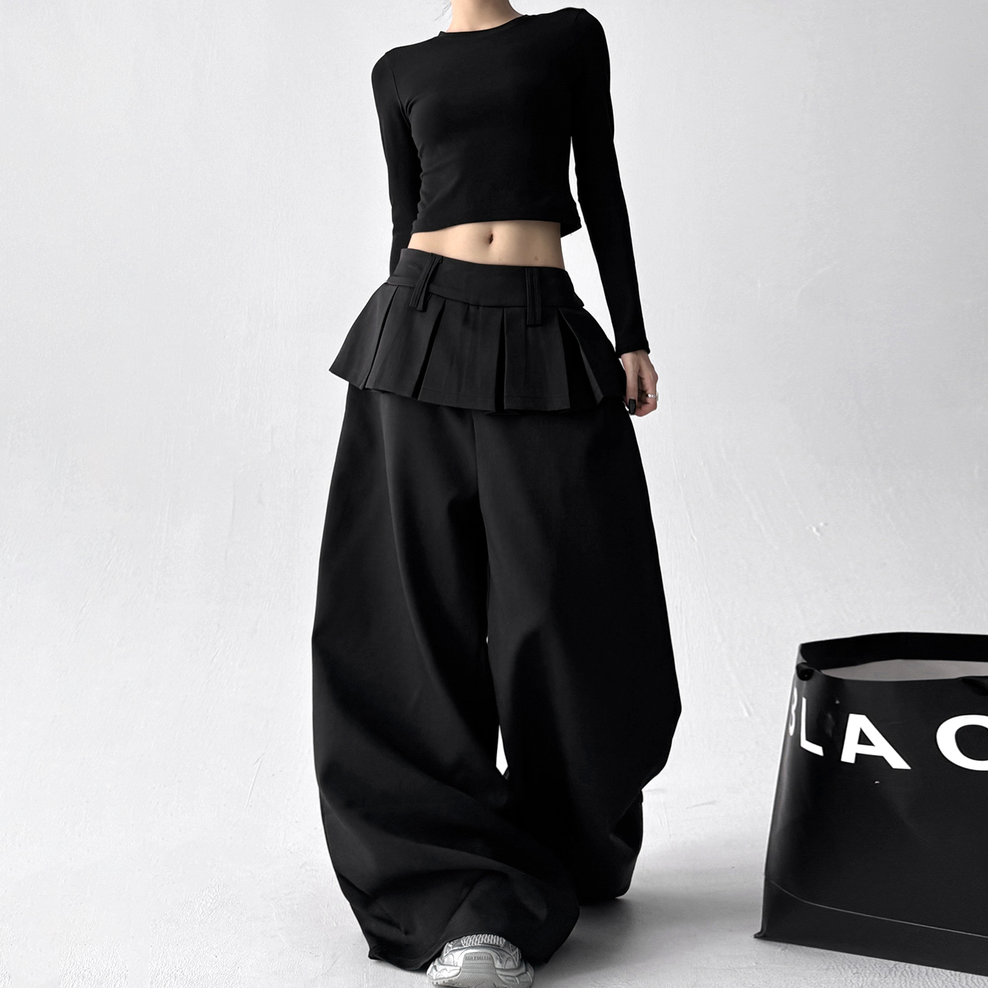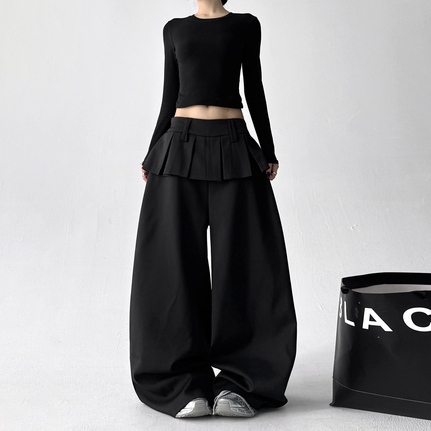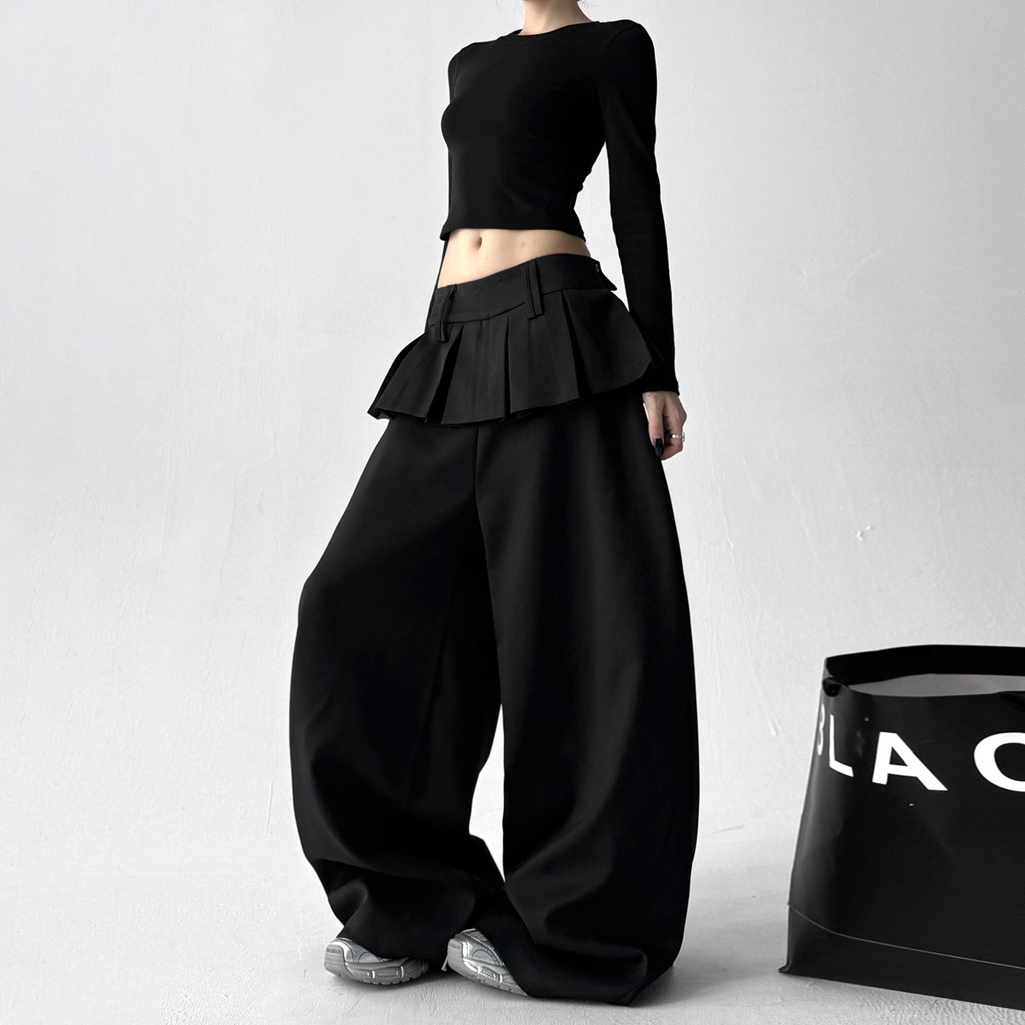 设计感高腰垂感显瘦直筒休闲长裤 2025秋季 阔腿裤 假两件西装 女 新款