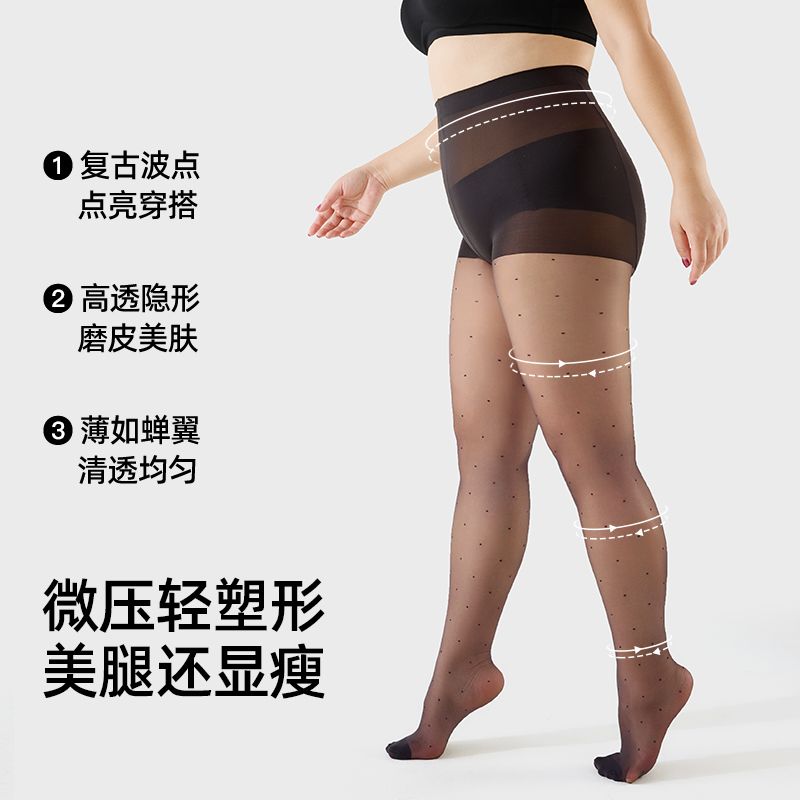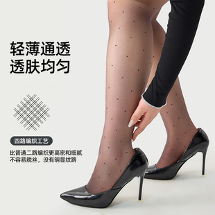 袜 防勾丝胖mm高级感穿搭打底光腿神器连裤 大码 波点黑丝袜女夏薄款