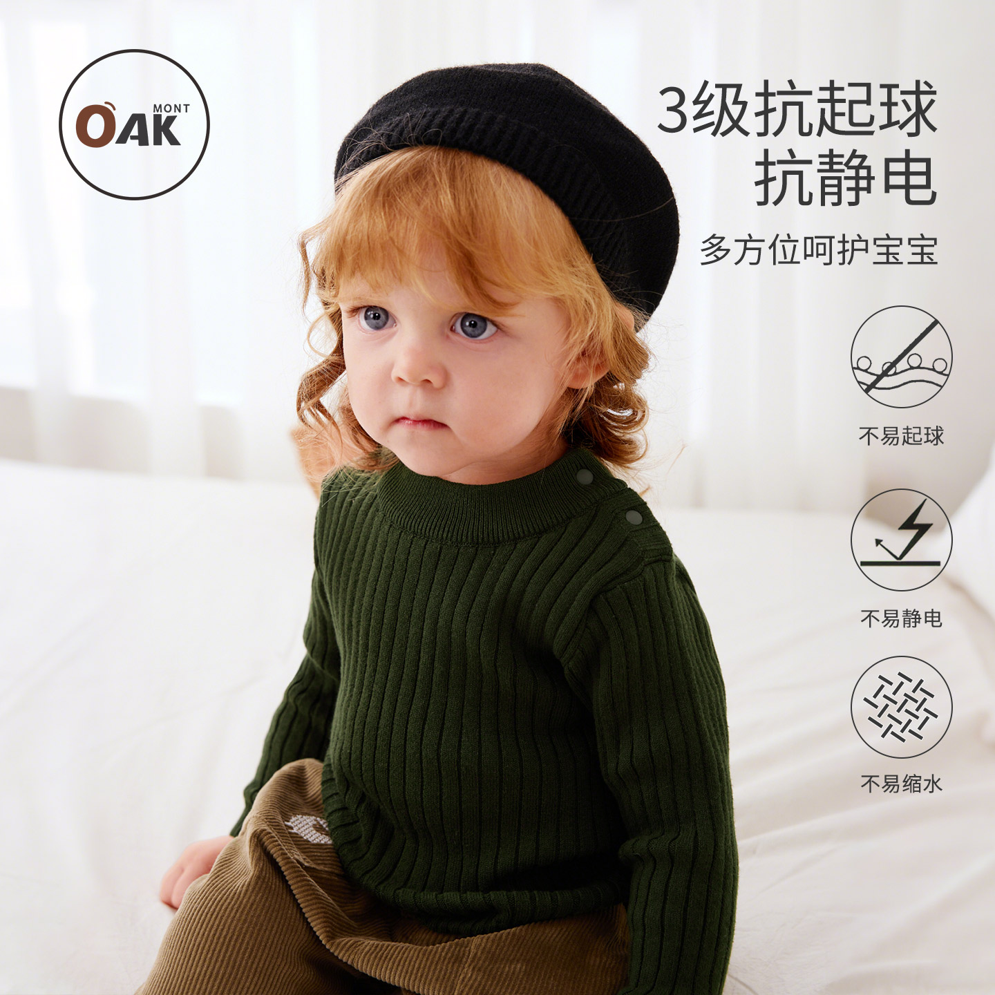 抗起球静电宝宝套头上衣 男童女童针织衫 Oak mont儿童毛衣秋冬新款