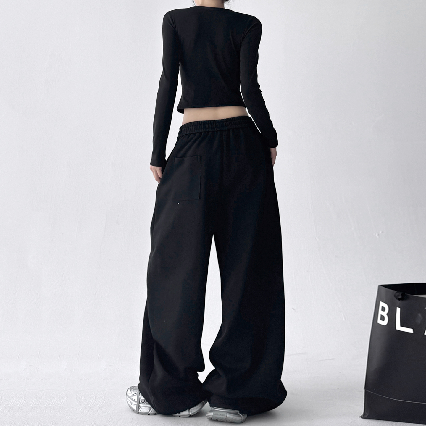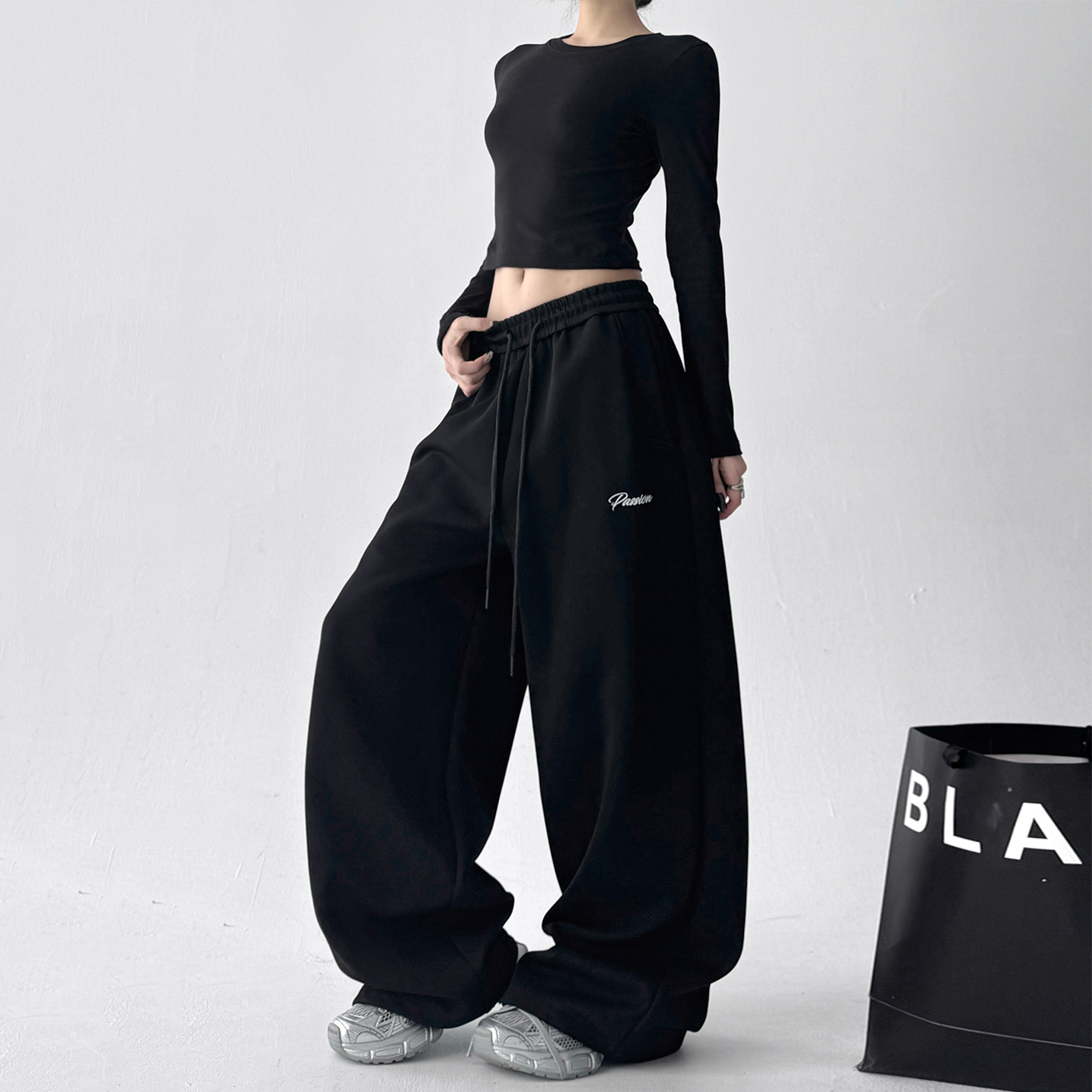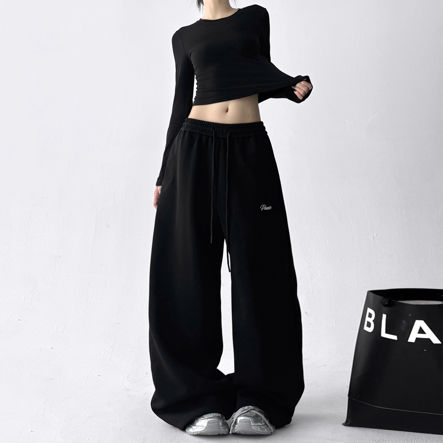 休闲阔腿卫裤 高腰垂感显瘦春秋直筒窄版 女夏2025年新款 黑色运动裤