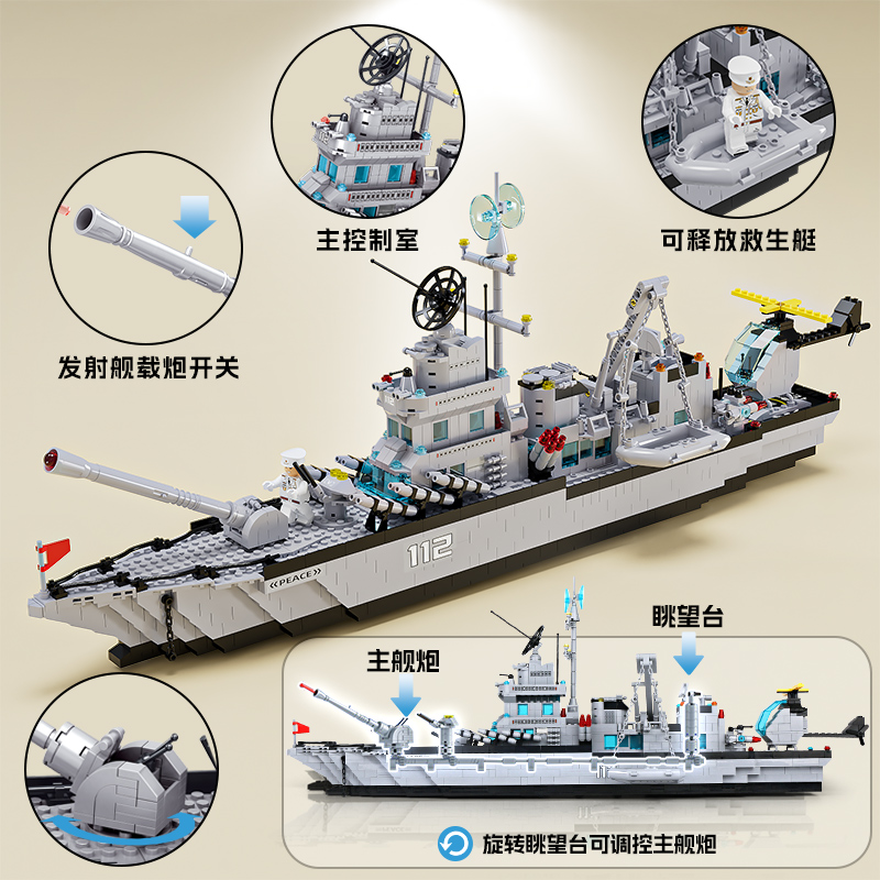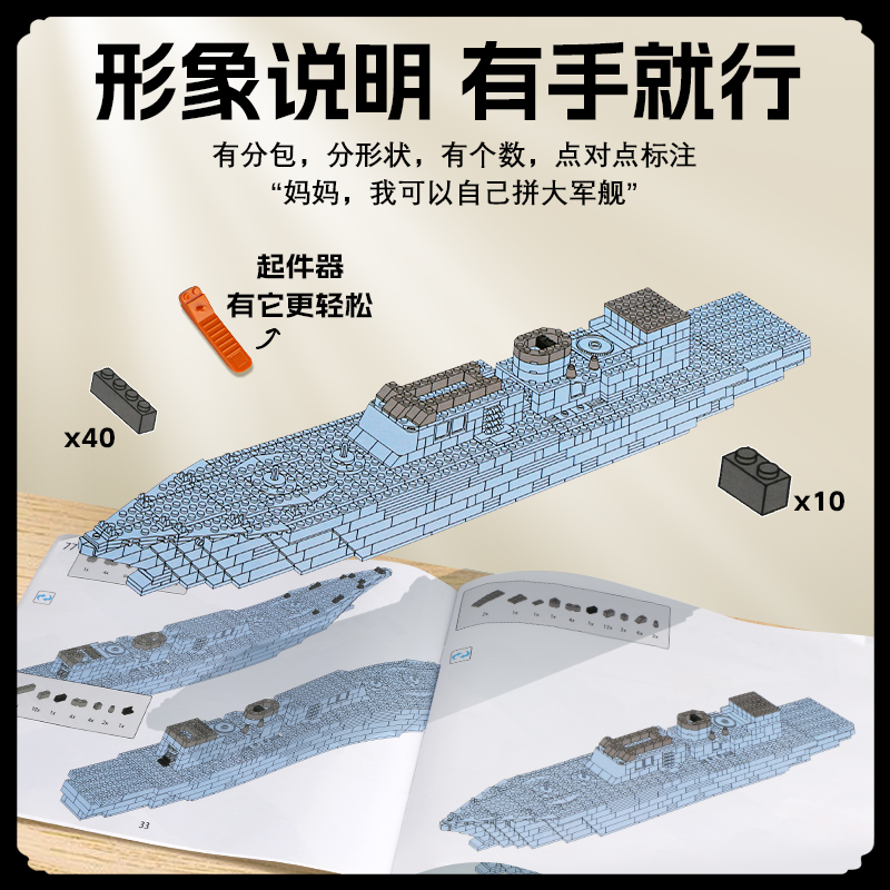 2025新款 儿童生日礼物 航空母舰积木男孩子玩具益智力动脑军舰拼装