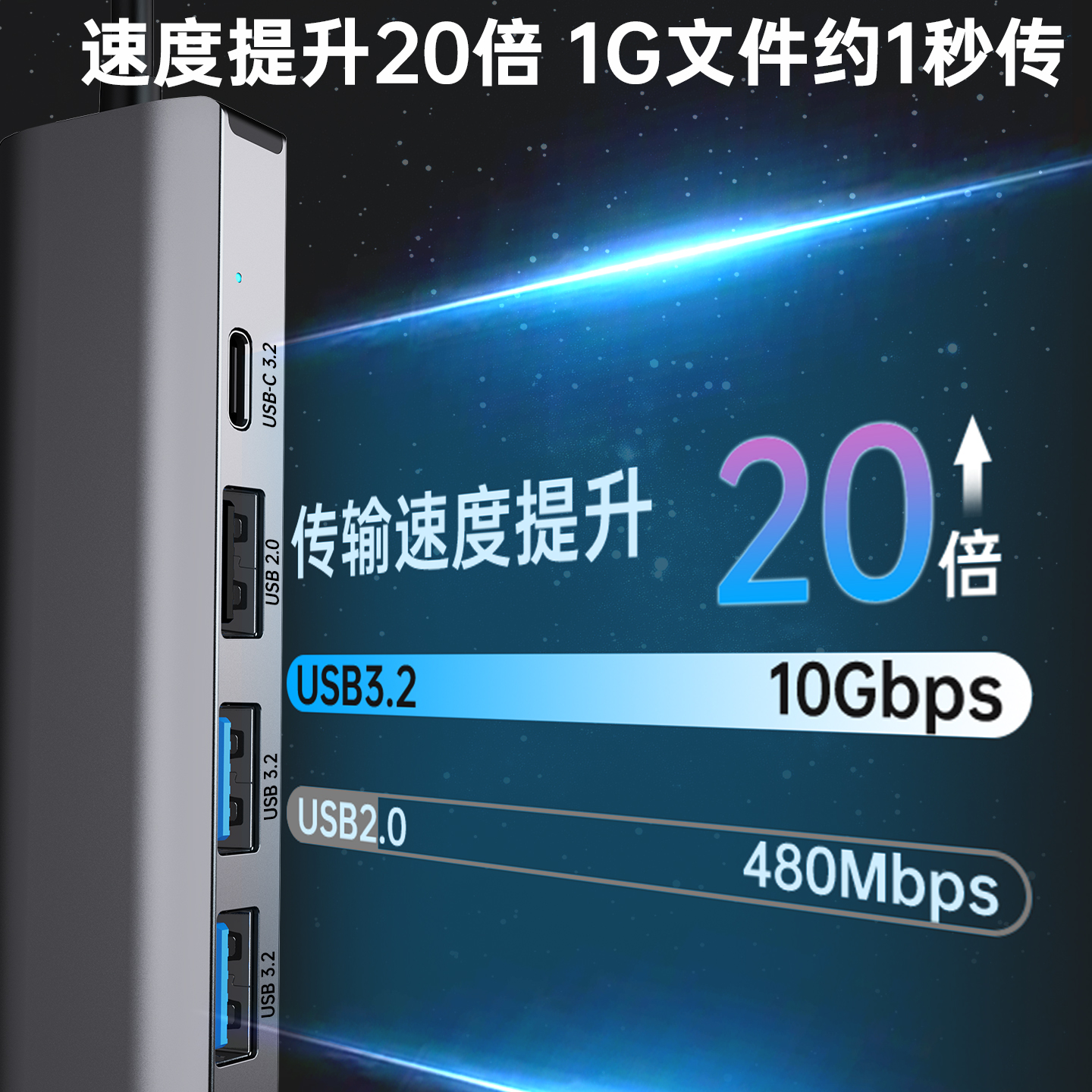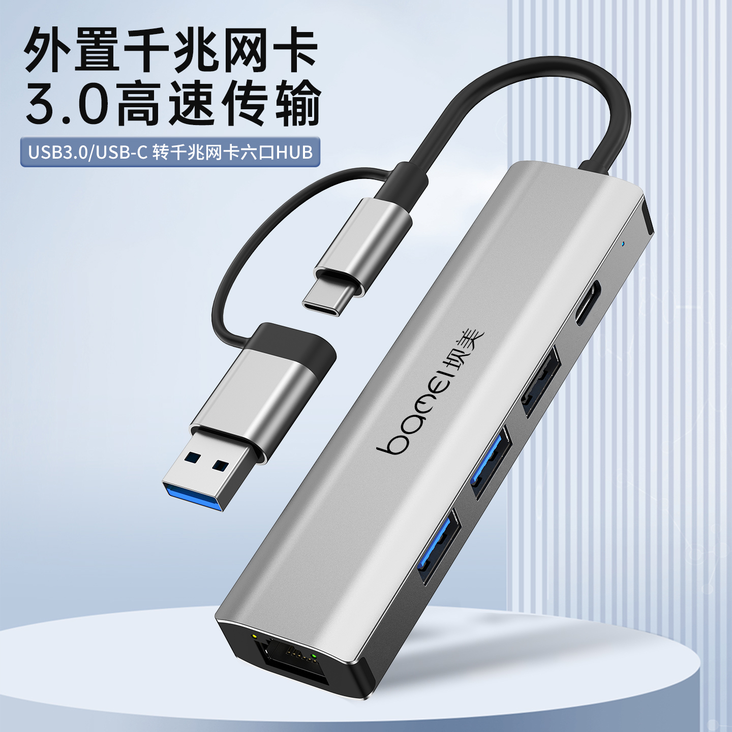 hub分线器PC台式 c双头扩展坞USB3.2有线千兆网口手机平板笔记本usb 机电脑集线器8152b芯片 type 坝美USB