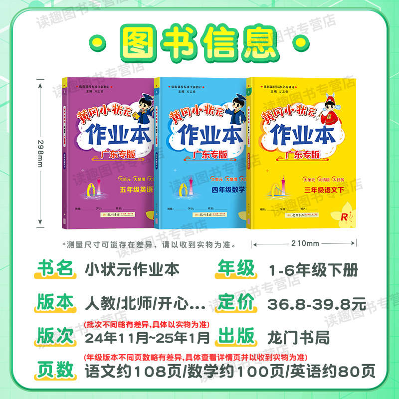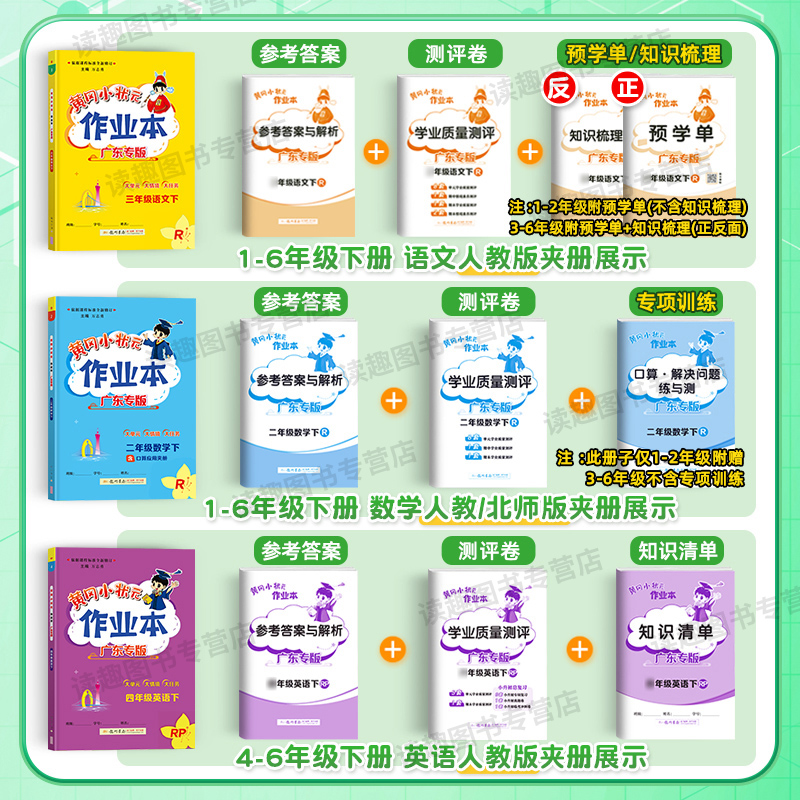 作业本一二三四五六年级上下册语文数学英语人教版 黄冈小状元 小学同步训练练习册深圳沪教黄岗作业课时习题册 2025春新版 广东专版