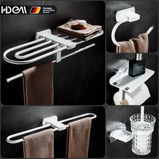 德国海德曼全铜浴巾架卫生间置物架白色毛巾杆卷纸架马桶刷牙杯架