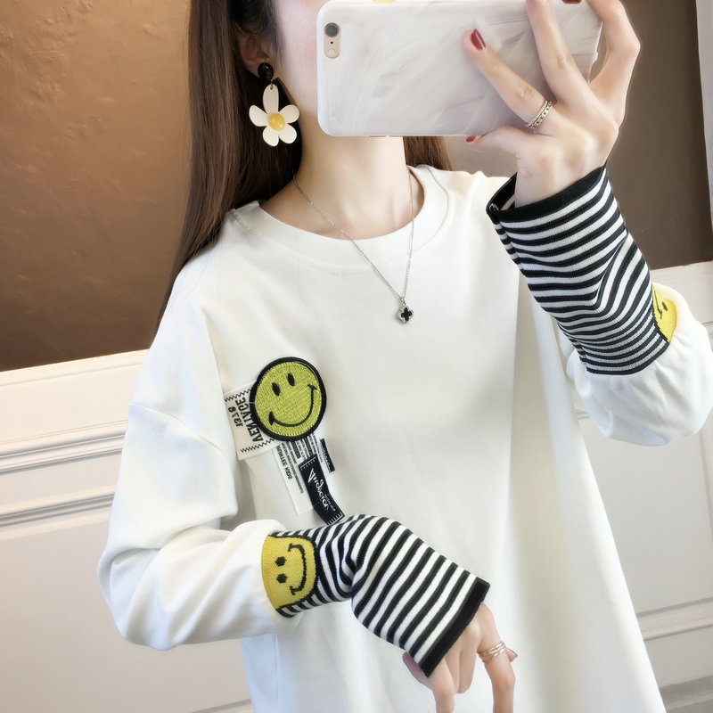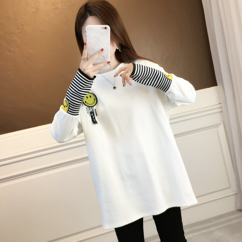 春秋冬内搭外穿修身 t恤女2025新款 辣妹上衣女 圆领长袖 白色中长款