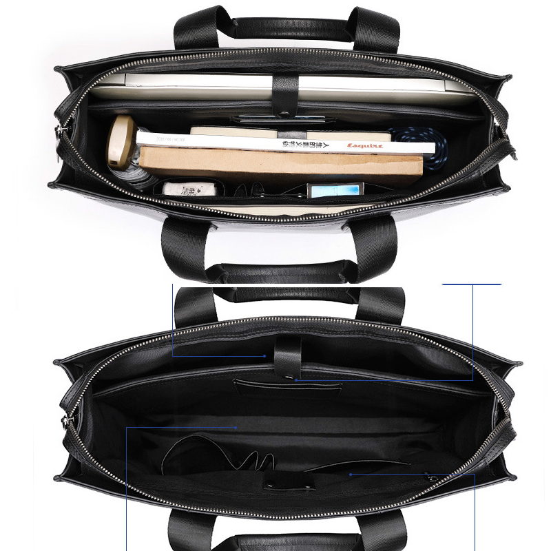 头层牛皮男士 14寸真皮电脑包大容量公务包 包公文旅行包商务包横款