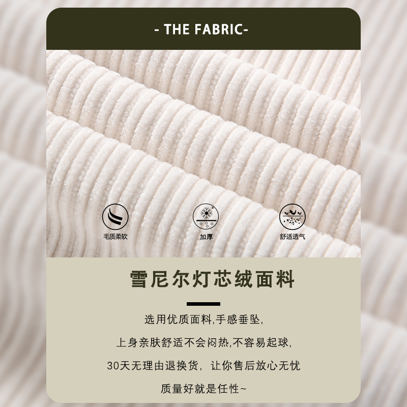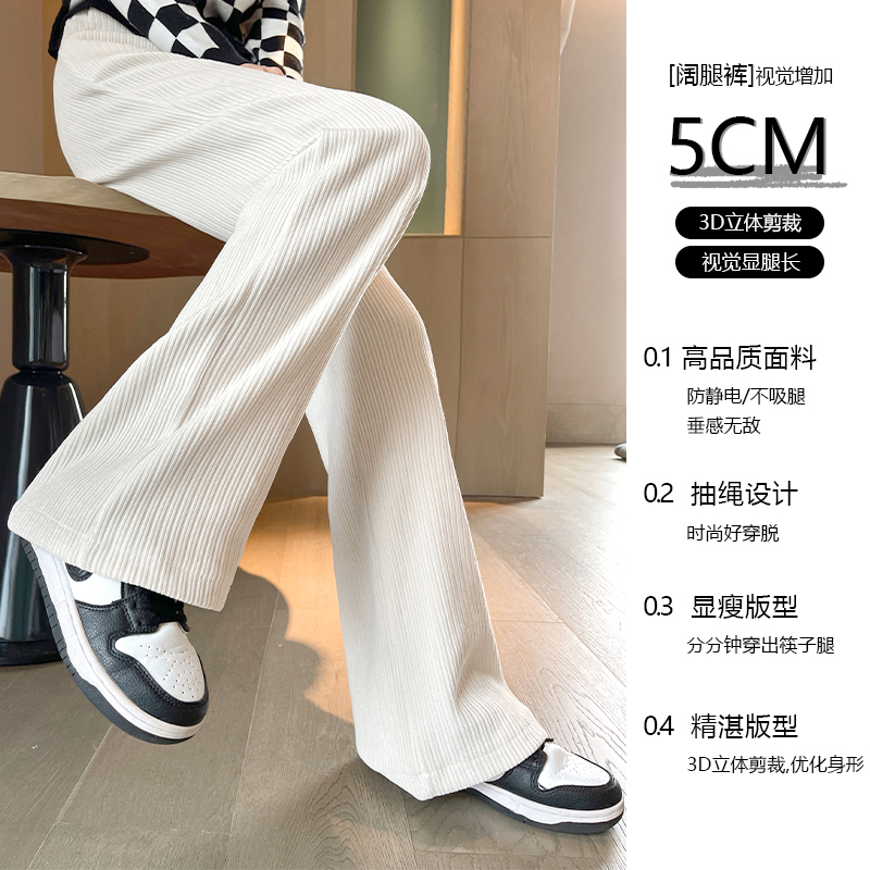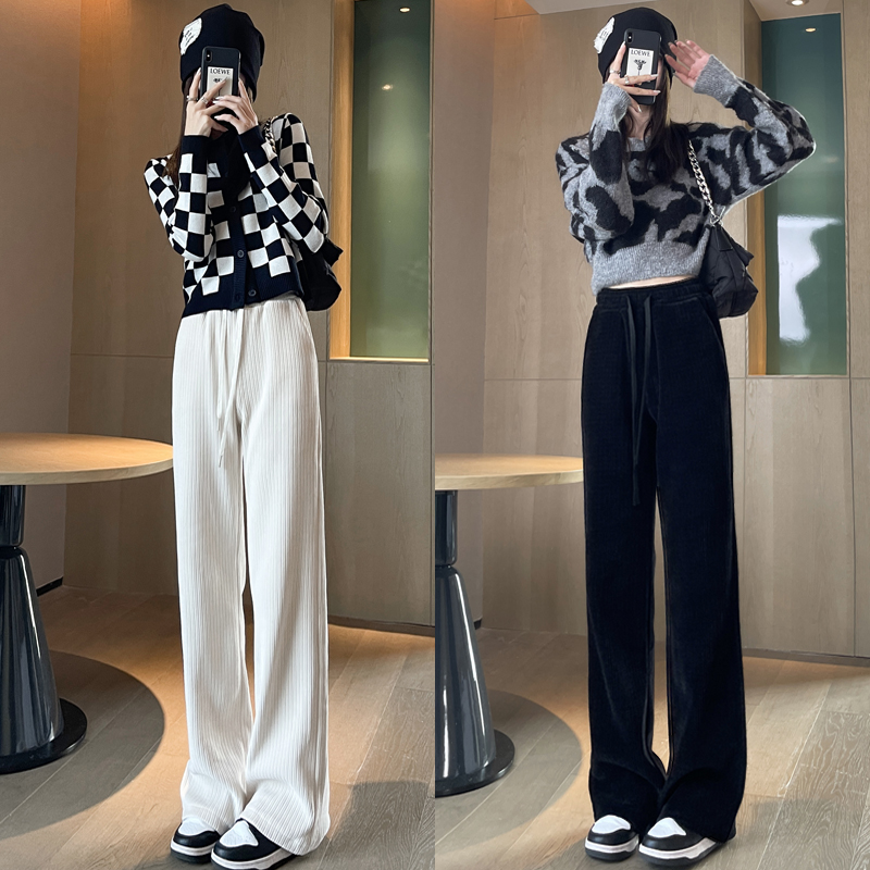 雪尼尔阔腿裤 子 女春秋加绒白色高腰垂感直筒拖地休闲奶奶灯芯绒裤