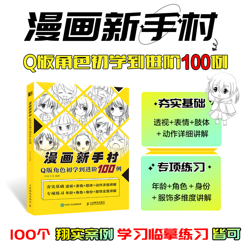 漫画角色造型 2册 角色初学到进阶100例 Q版 漫画教程书动漫人物手绘入门漫画人物角色设定临摹画册漫画素描技法绘画 漫画新手村