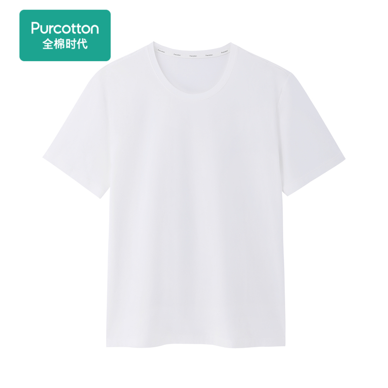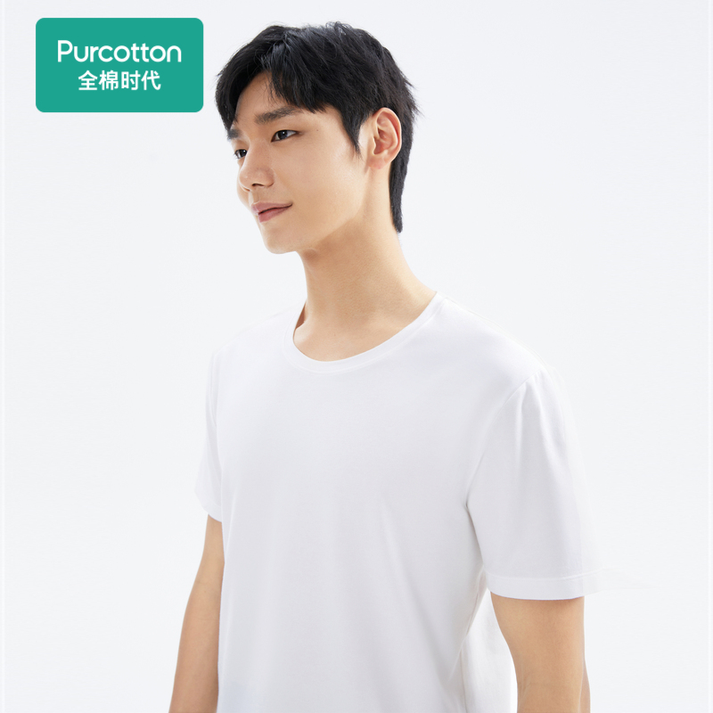 基础款 全棉时代男士 男女舒适弹力简约T恤圆领短袖 男新款 打底衫