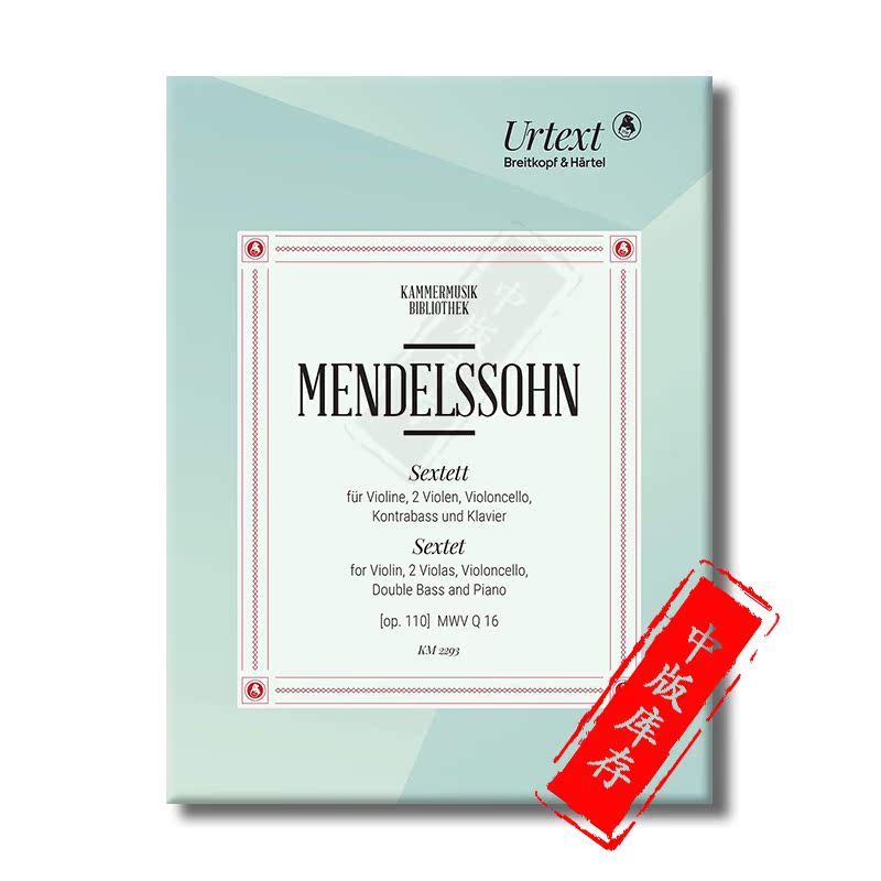 110 KM2293 Sextet 总谱 六重奏MWVQ16 大熊原版 两把中提琴 小提琴 Mendelssohn 门德尔松 大提琴 乐谱书 低音提琴和钢琴