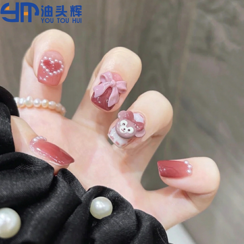 2023年流行美甲贴片果冻胶美甲贴超粘车厘子红御姐2022年新款