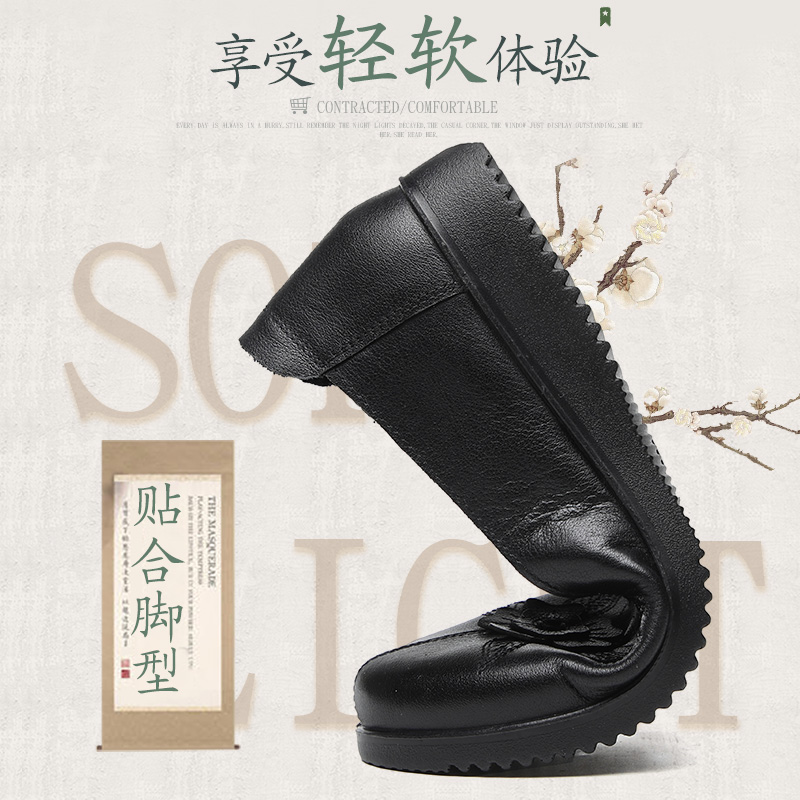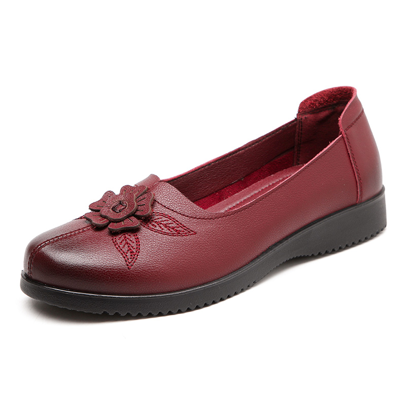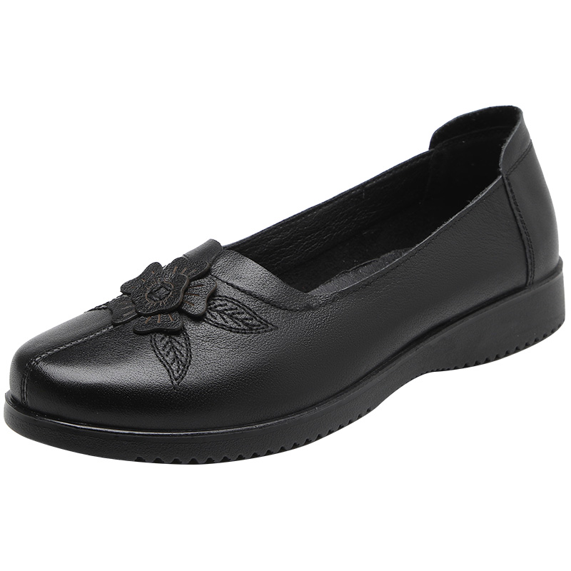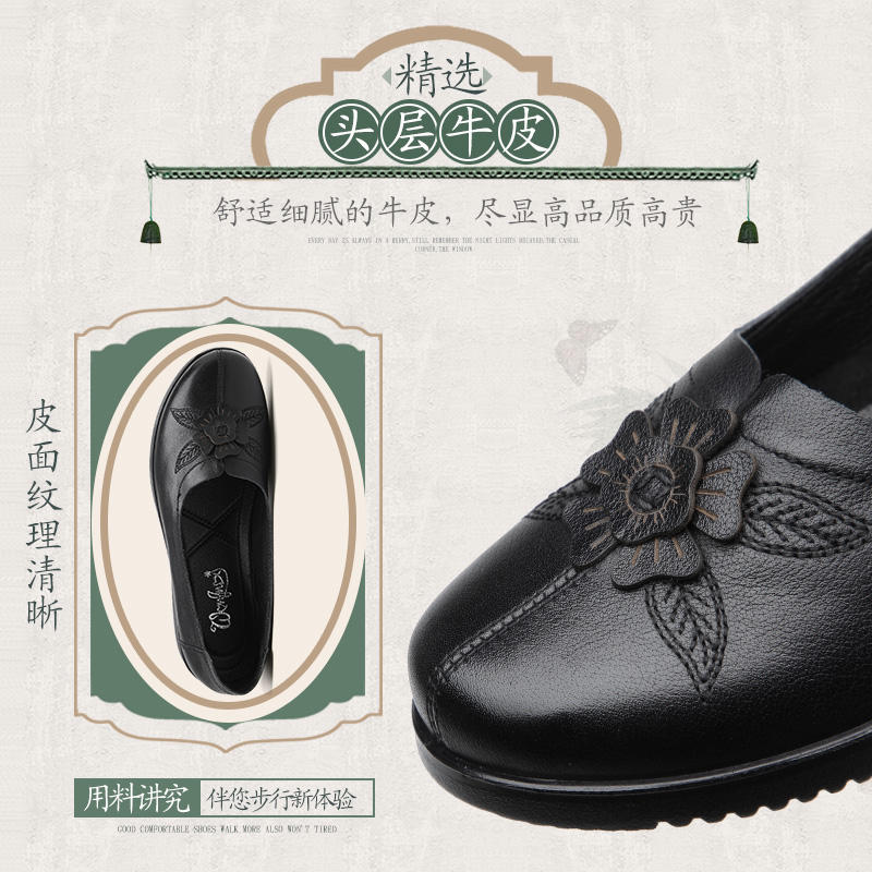 防滑圆头老人皮鞋 中老年大码 清仓 平底浅口女鞋 旺奈真皮软底妈妈鞋
