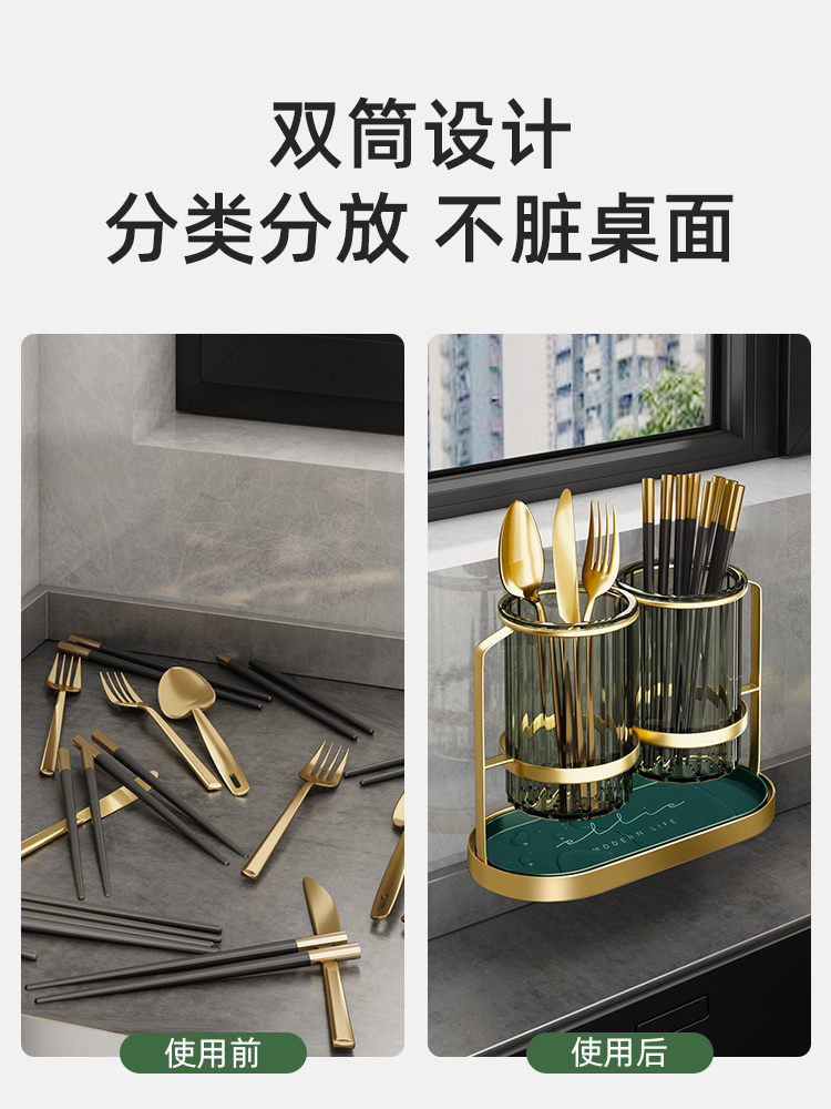 轻奢筷子置物架壁挂家用筷子筒厨房家庭新款 沥水收纳盒筷子篓筷笼