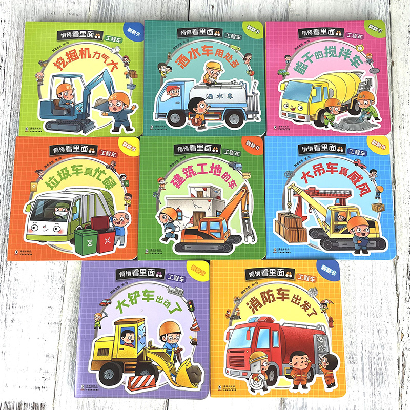 悄悄看里面翻翻书全套人体篇动物篇自然篇工程车生活中 6岁儿童撕不烂婴儿宝宝启蒙身体认知 各种车消防车警车挖掘机绘本2