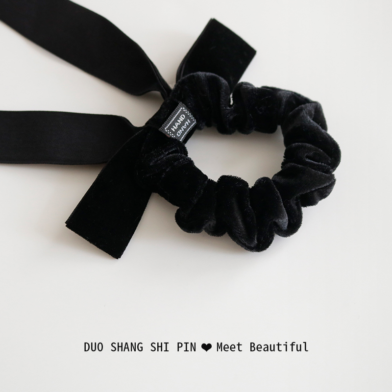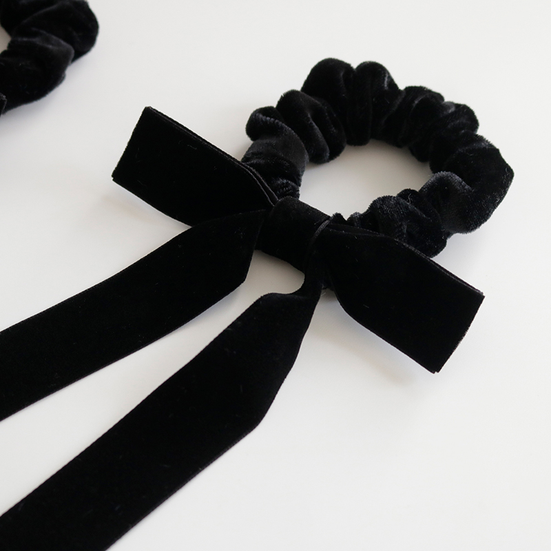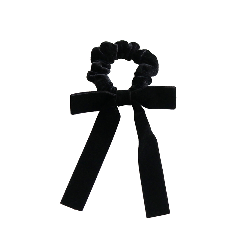 简约黑色丝绒蝴蝶结发饰飘带头绳气质发带女绑发韩国扎头发绳发圈