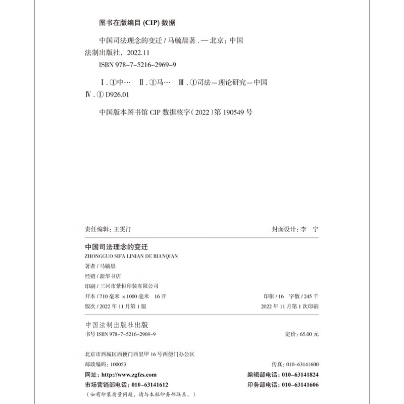 马毓晨 变迁 著 中国法制出版 9787521629699 正版 社 中国司法理念