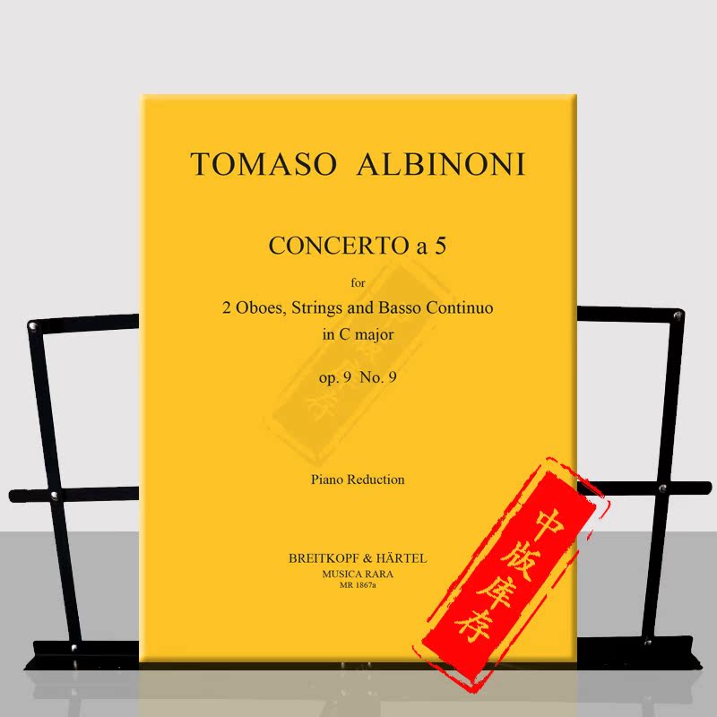 C大调 乐谱书 第五协奏曲 No9 MR1867a 阿尔比诺尼 两支双簧管弦乐和低音通奏 Op9 Concerto Albinoni 大熊原版