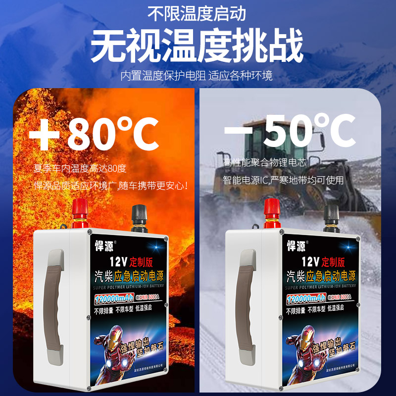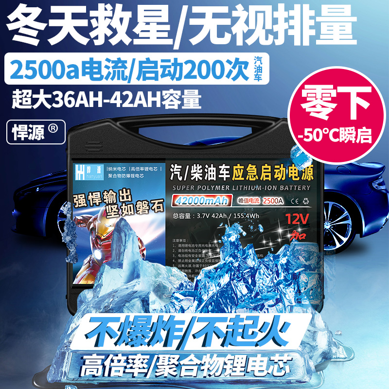 悍源应急启动电池12V汽柴备用强启电瓶大容量搭电宝车载打火神器
