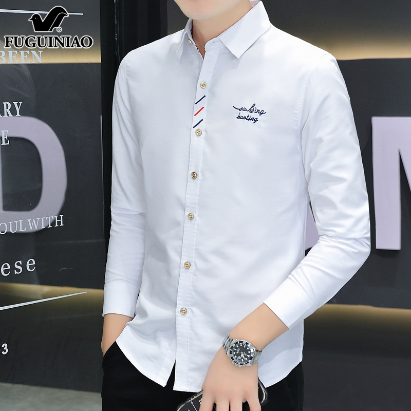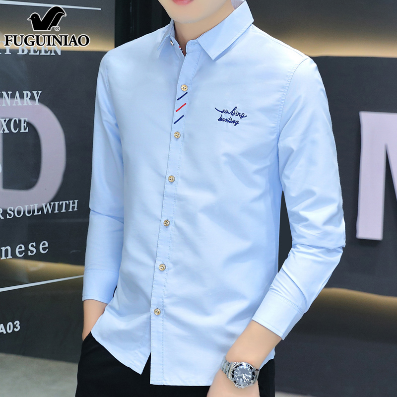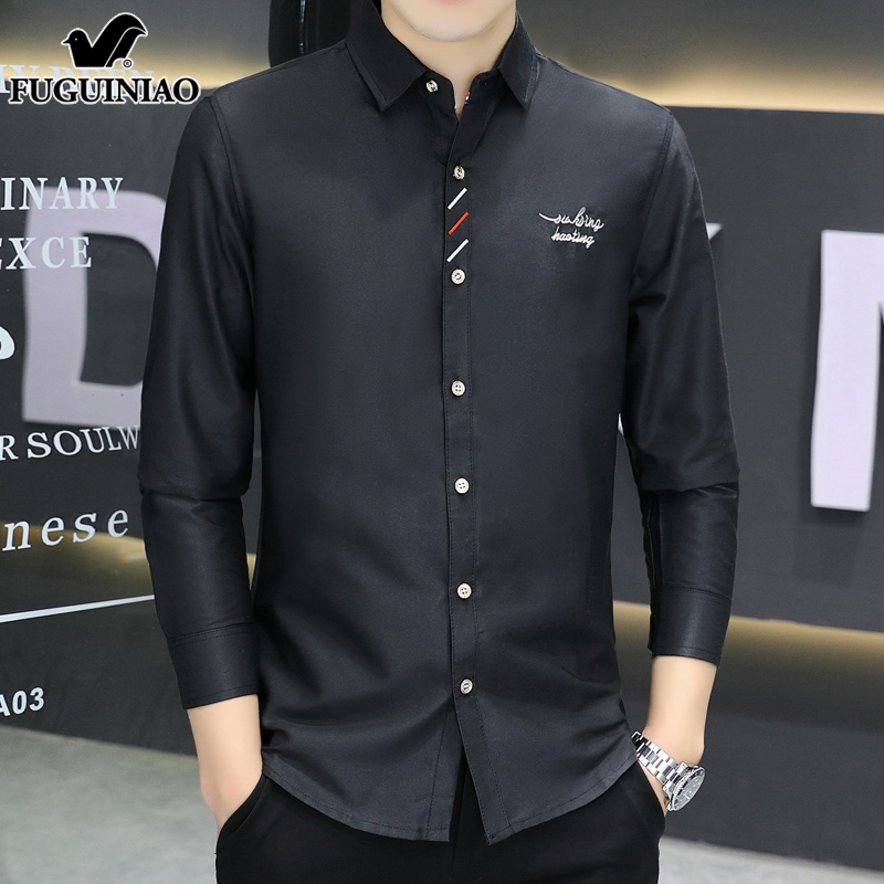 长袖 商务白衬衫 修身 抗皱职业短袖 上班免烫伴郎 春季 衬衣黑正装 男士