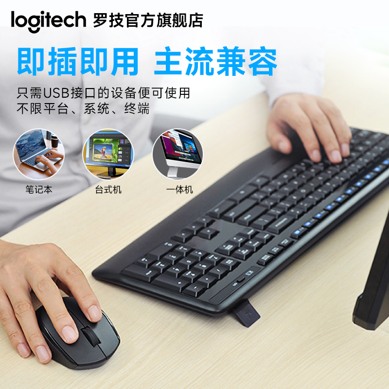 罗技MK346P无线键盘鼠标套装 键鼠滑鼠人体工学办公215 MK345升级款