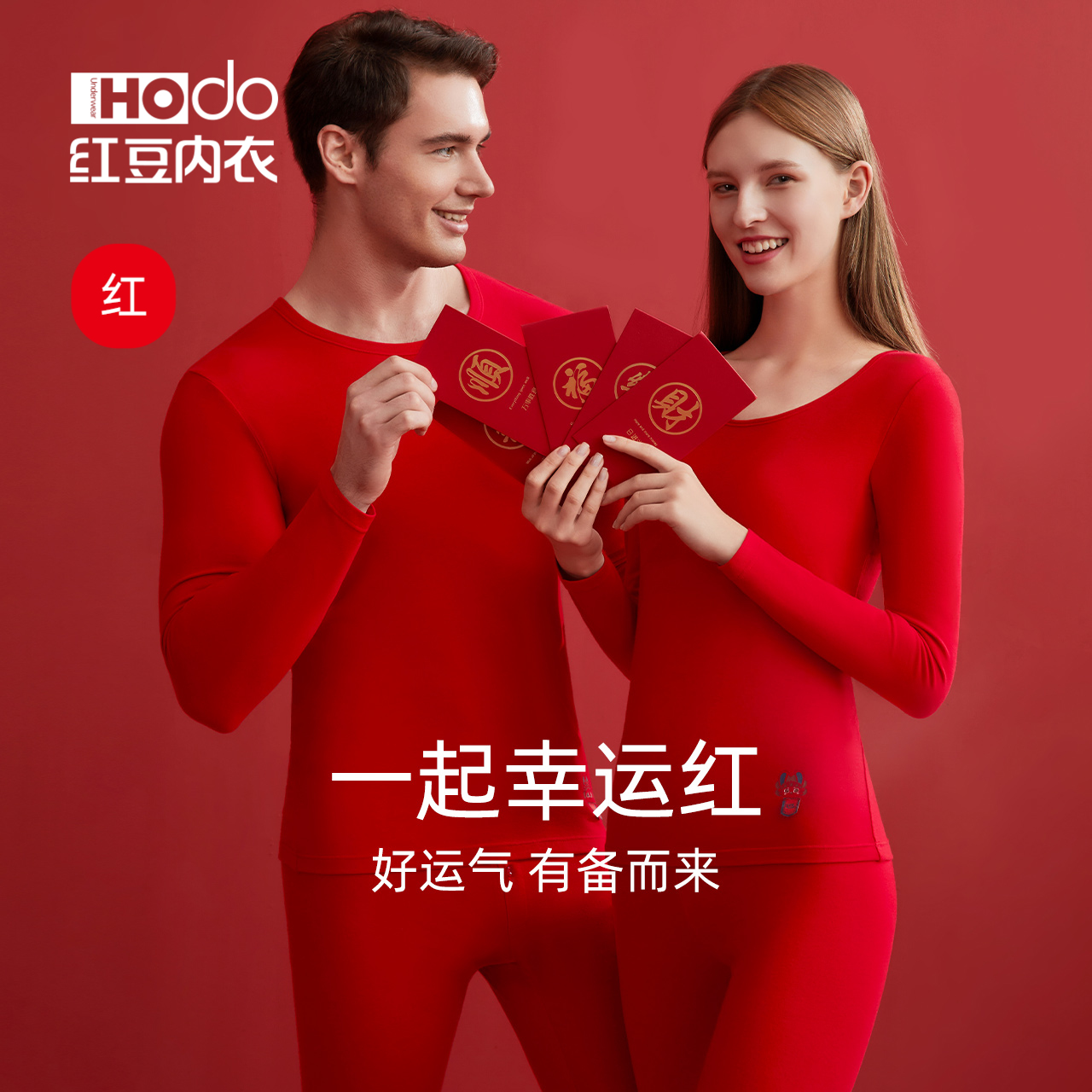 红豆情侣本命年兔年红色内衣鸿运结婚男女士打底秋衣秋裤 保暖套装