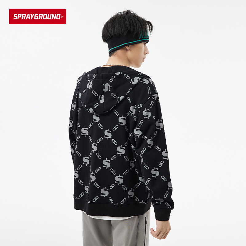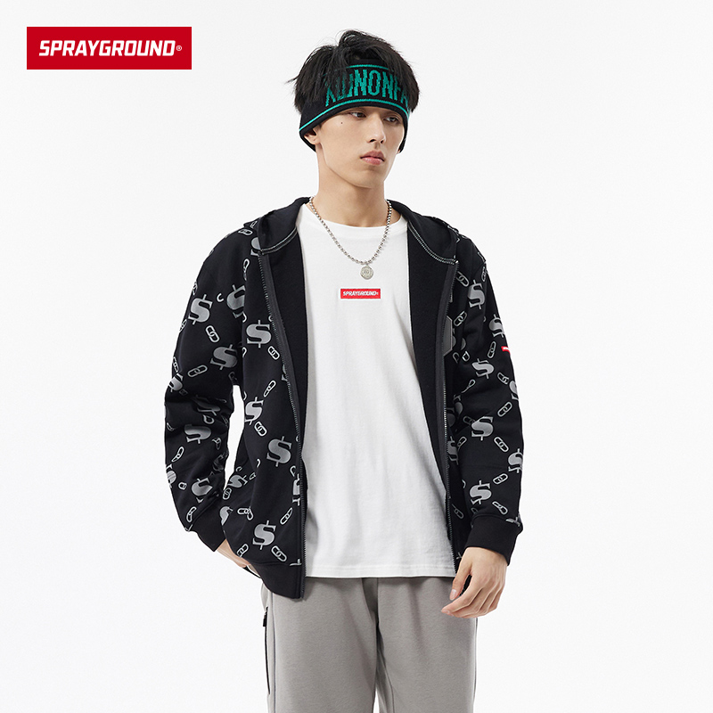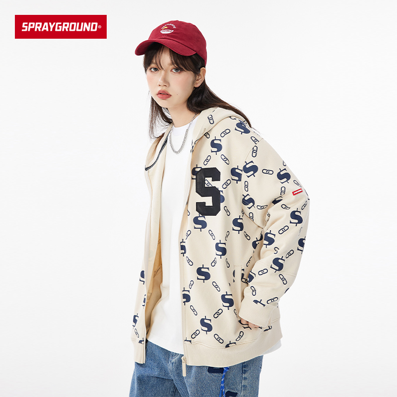 SprayGround秋冬新款 卫衣连帽情侣女休闲外套男W0843305 复古开衫