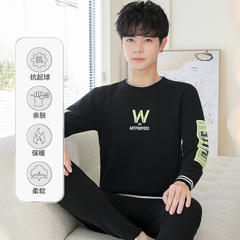 打底 高中学生上衣套装 青少年保暖内衣男大童加绒加厚秋衣秋裤 男士