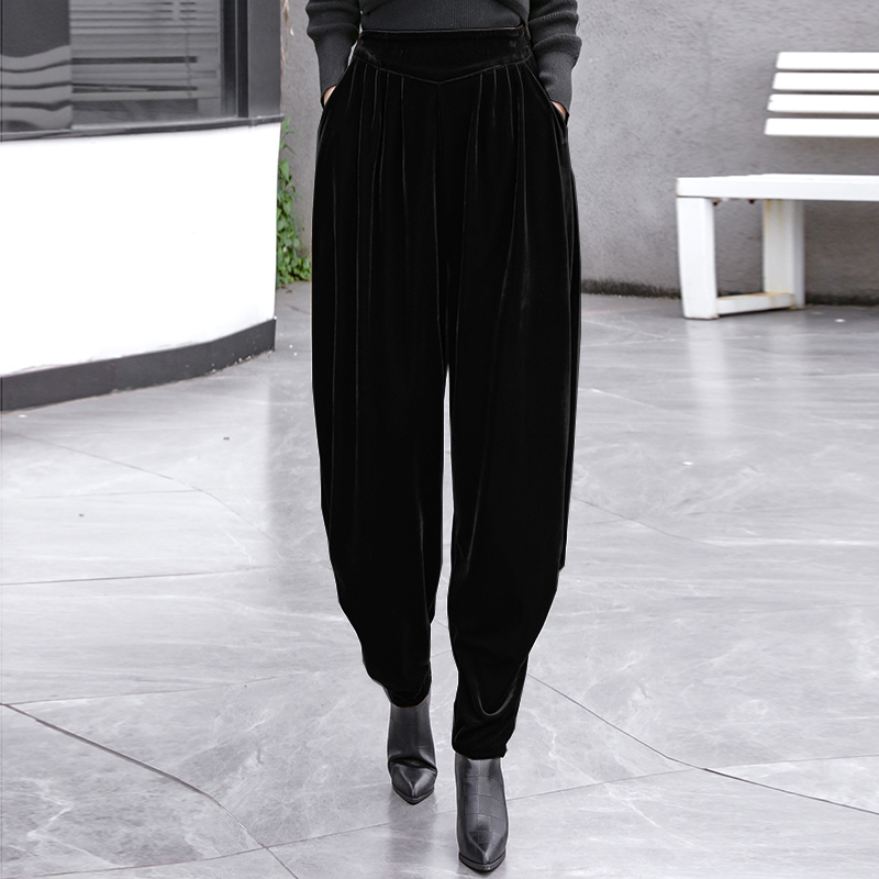 休闲裤 高腰垂感垮裤 子 女秋冬加绒火龙果色丝绒阔腿裤 韩国绒灯笼裤