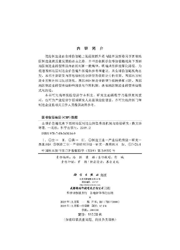 全球价值链视角下西部地区制造业转型升级机制与路径研究