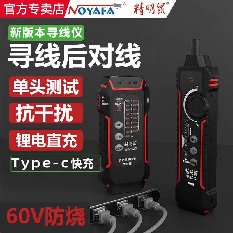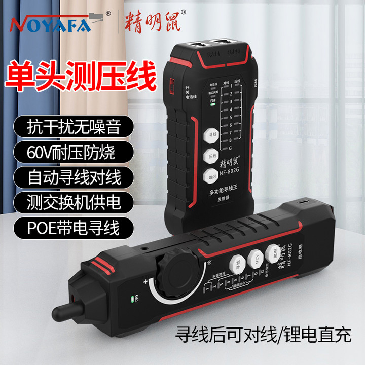 精明鼠寻线仪网线检测器NF 802G网络测试仪POE交换机带电巡线器抗干扰防烧耐压60V水晶头单头测试测通仪套装
