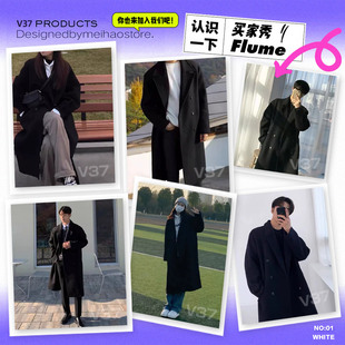 韩版 长款 呢子加厚风衣外套 2025春秋季 V37黑色高级感毛呢大衣男款