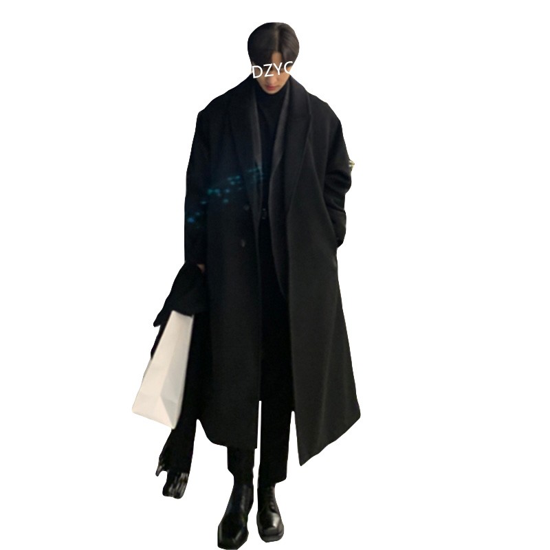 过膝无羊绒呢子风衣外套韩版 毛呢大衣男中长款 宽松落肩 新款 秋冬季