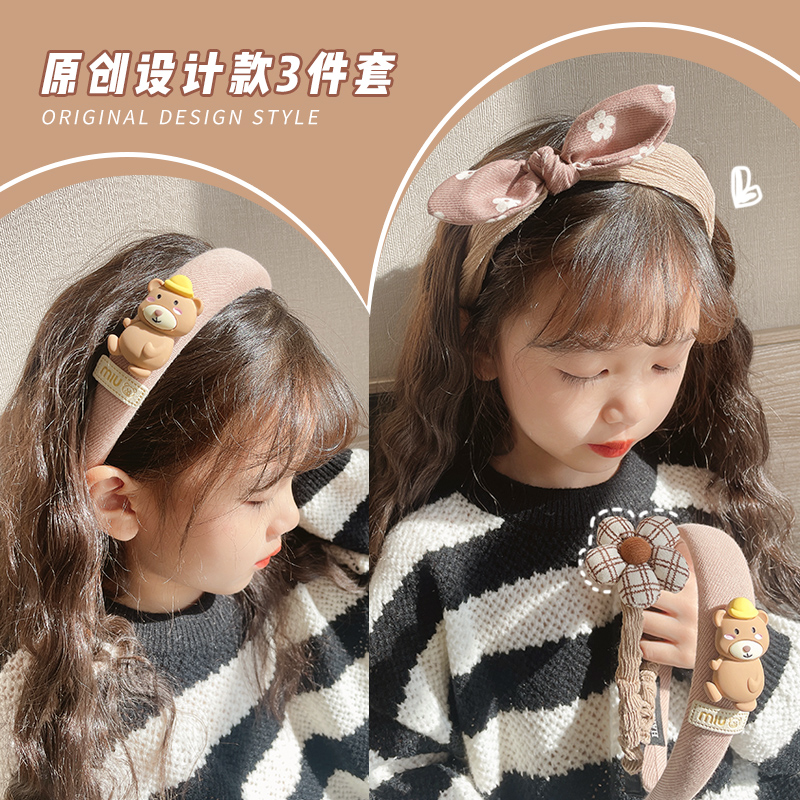 奶咖色发箍儿童女上学防滑新款 可爱公主头箍小熊发卡宝宝发捆头饰