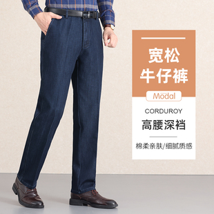 男款 夏季 高腰宽松中年裤 中老年人休闲男裤 子男春秋厚款 爸爸牛仔裤
