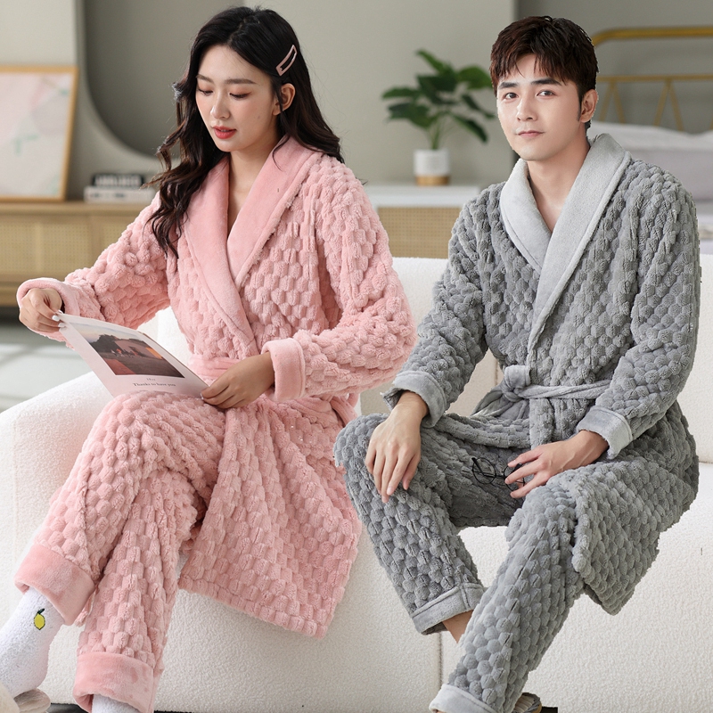 珊瑚绒睡衣情侣秋冬开衫 造福鸟新款 法兰绒家居服套装 蜂狂双11