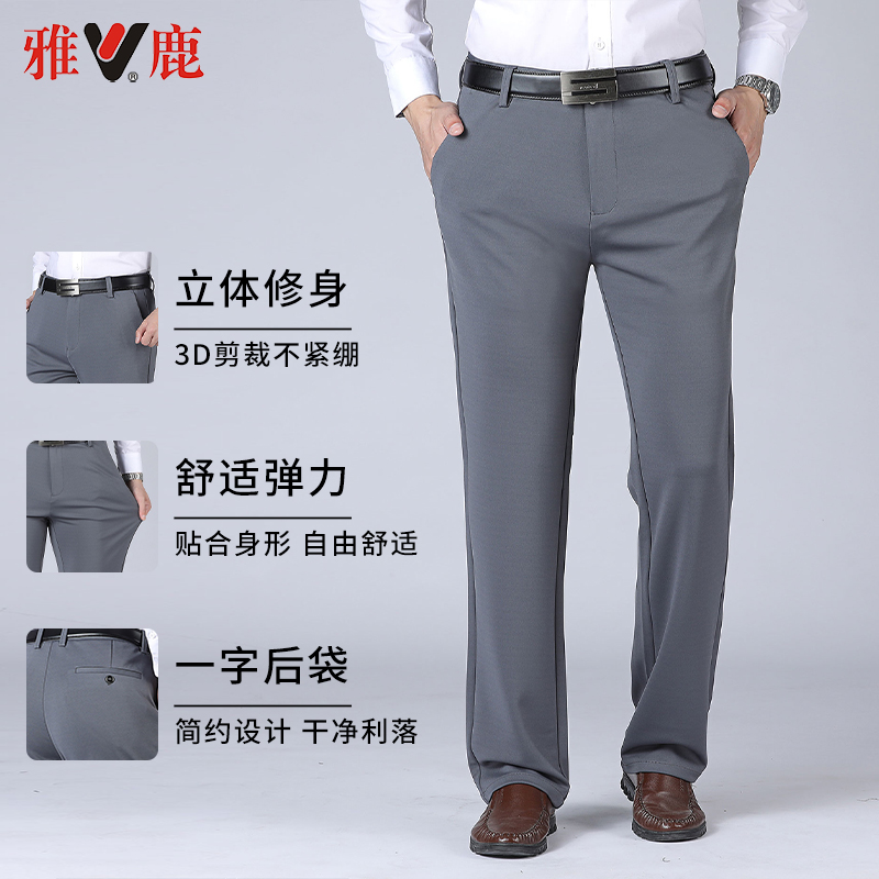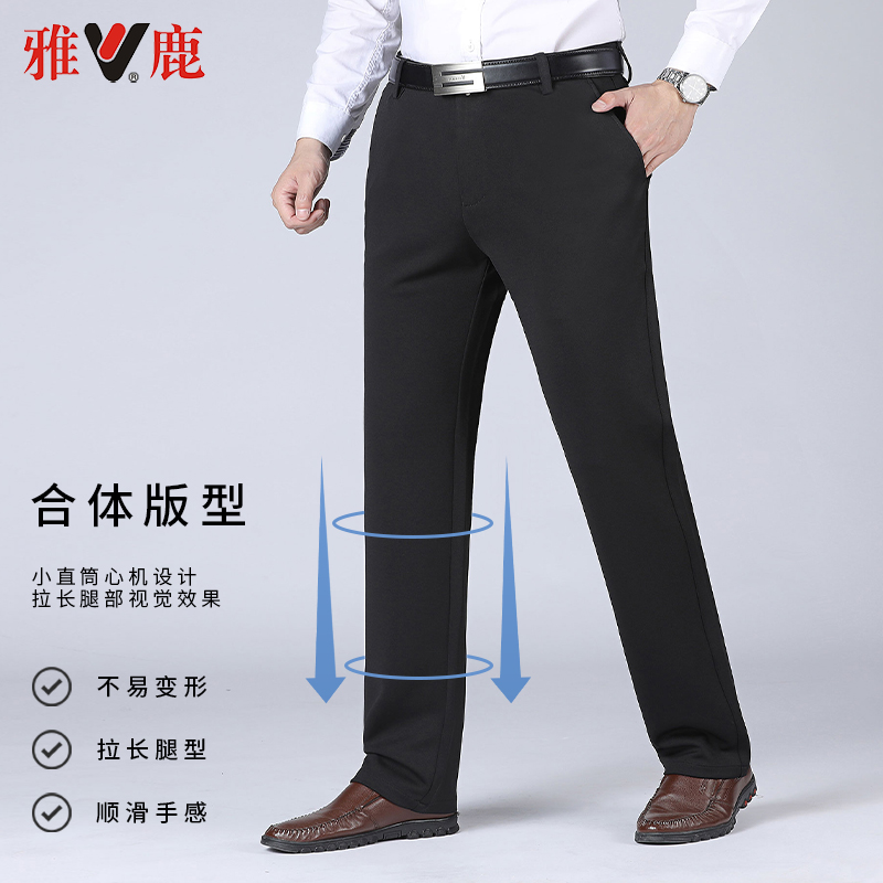 子春秋季 宽松直筒抗皱免烫长裤 爸爸装 男士 子 休闲裤 雅鹿中老年男裤
