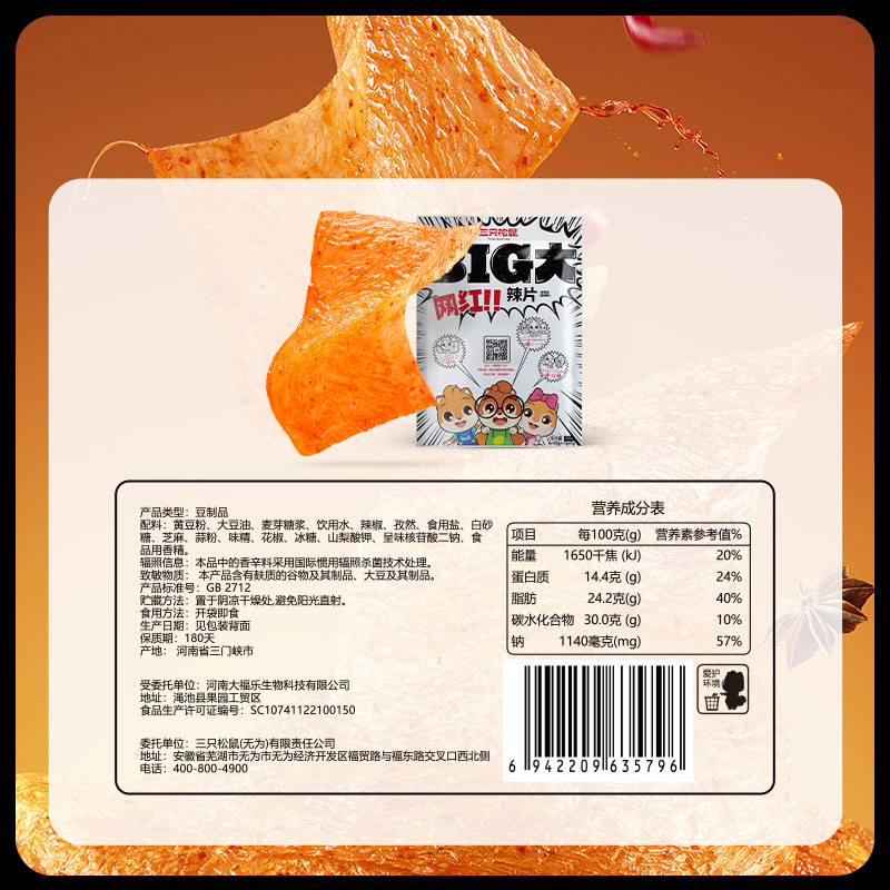 三只松鼠BIG大辣片香辣味68g手撕辣条豆腐干豆皮童年零食