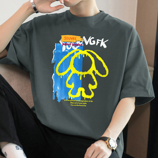 美式 圆领潮流印花半袖 Oversize体恤上衣 t恤男装 260g重磅纯棉短袖