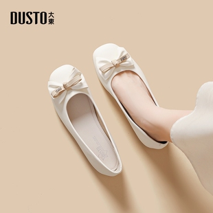 新款 女鞋 女士温柔蝴蝶结浅口单鞋 淑女平底单鞋 法式 热风2025年夏季