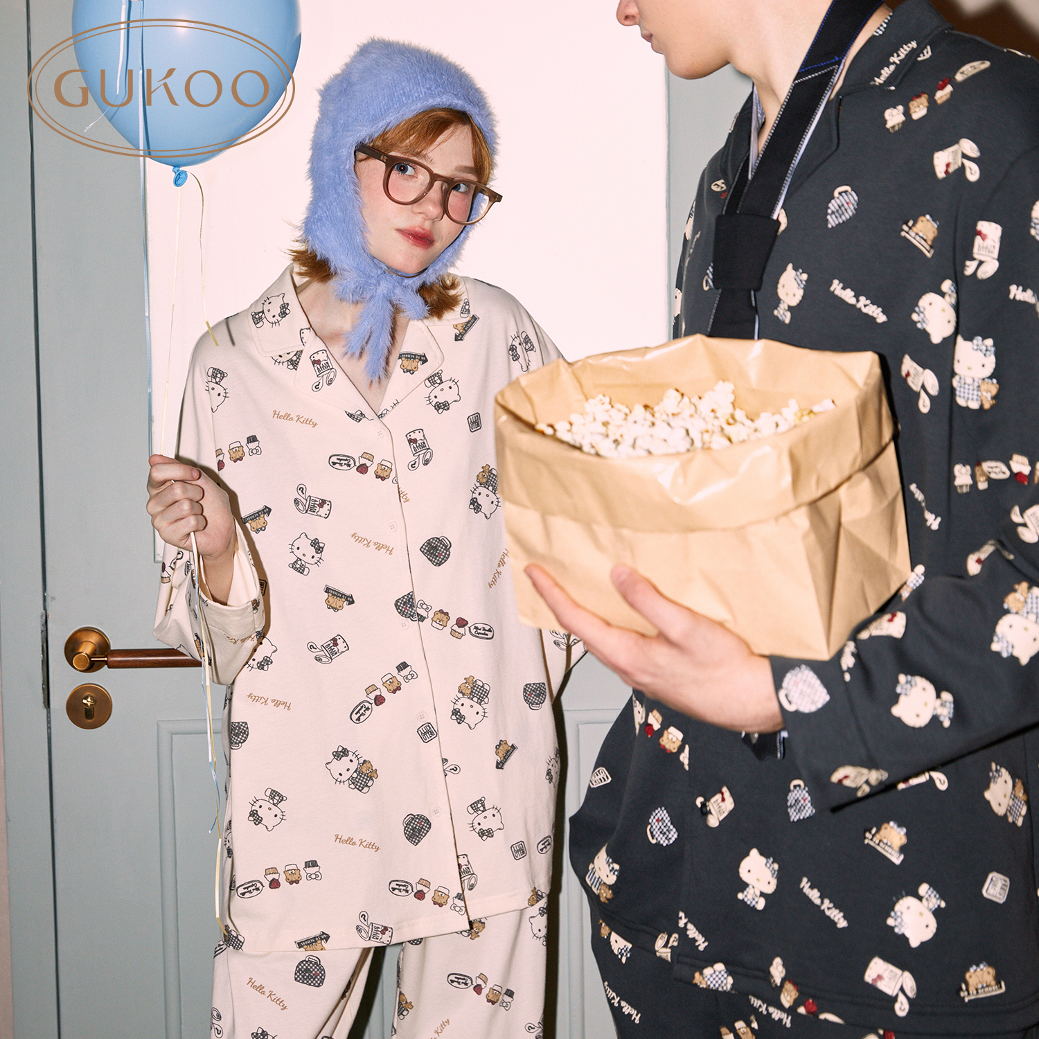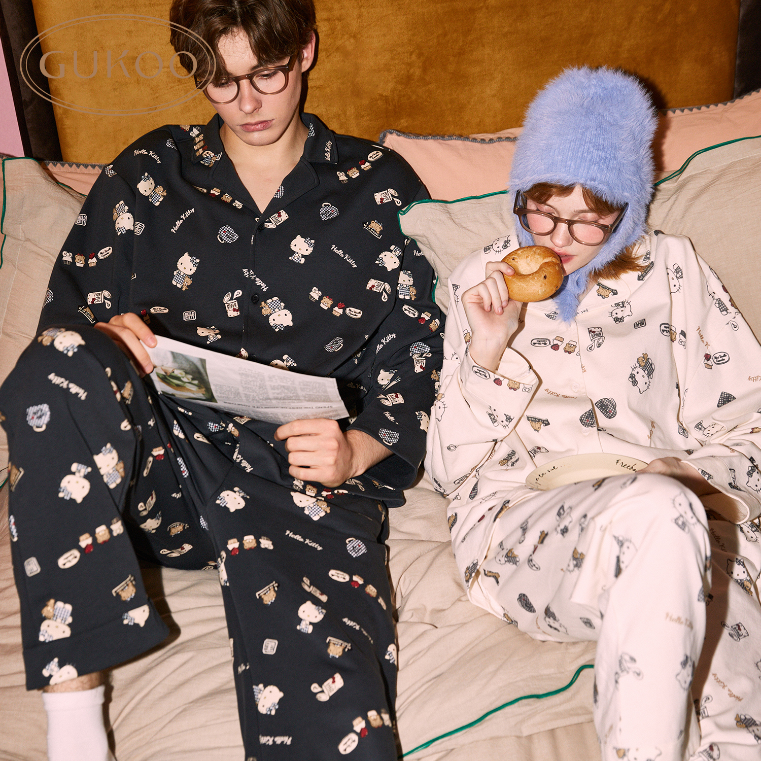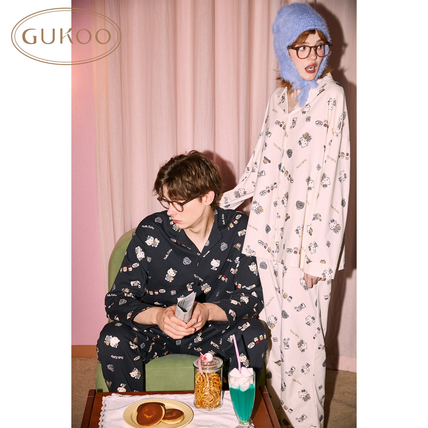 男家居服套装 Gukoo果壳睡衣情侣春秋款 HelloKitty睡衣女纯棉新款