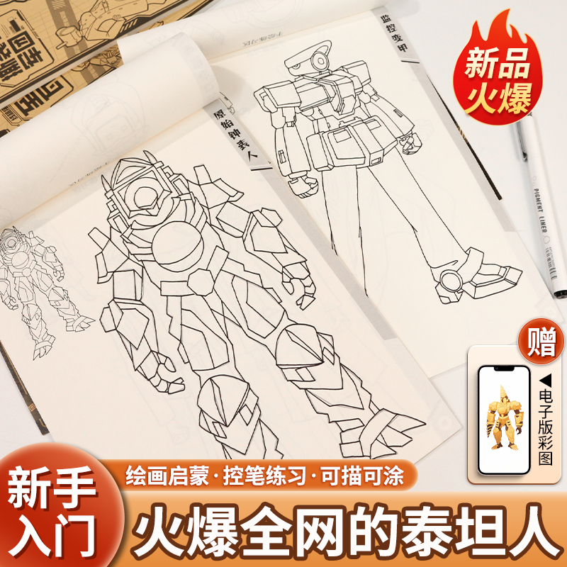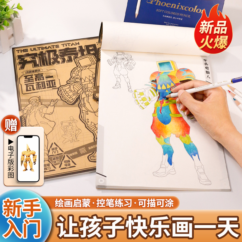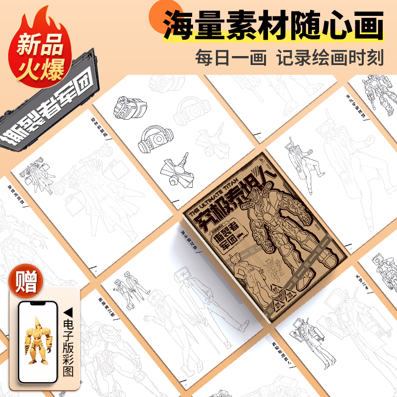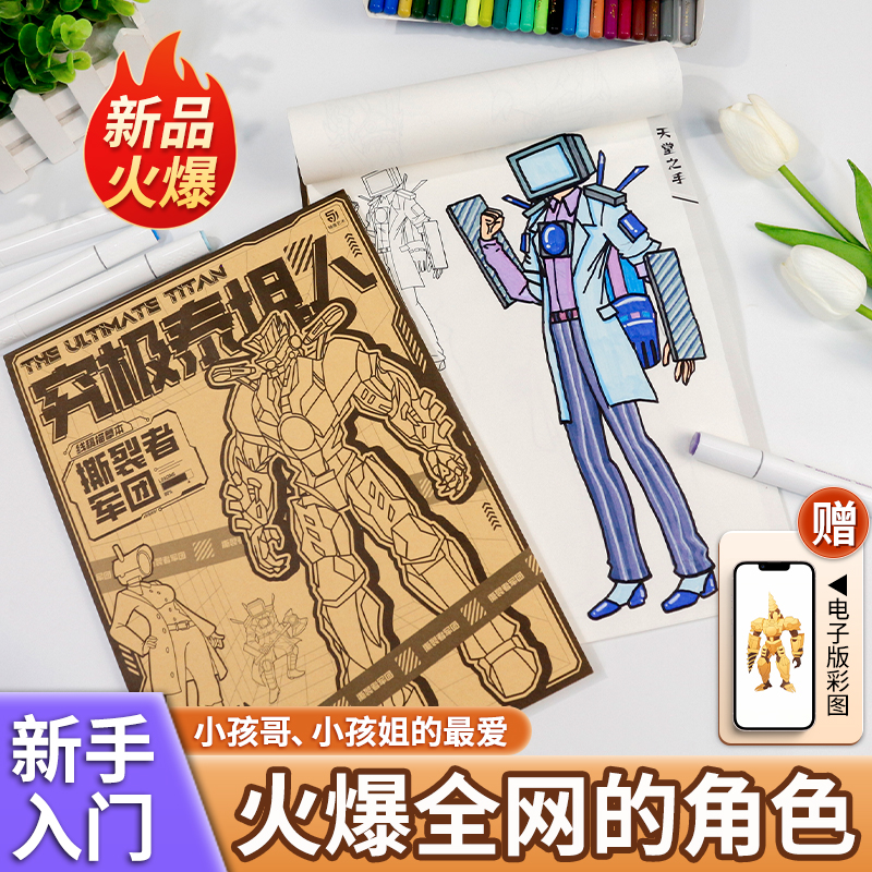 多元 线稿描摹本 宇宙画画描绘本 儿童简笔画绘画启蒙马克笔 图画本涂色本 究极泰坦人 小学生素描本线描画册 撕裂者军团至高瓦利亚