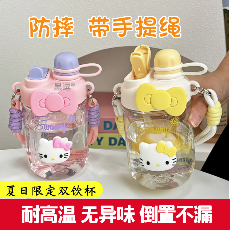 kt猫水杯2025新款 女生高颜值便携学生可爱吸管杯子夏天水壶大容量