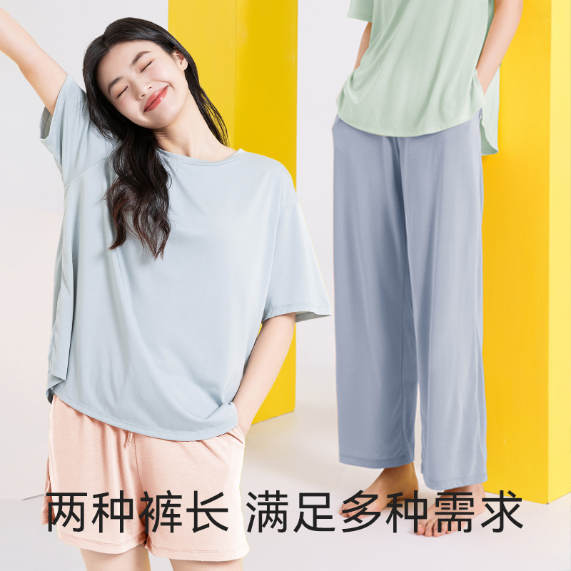 夏季 睡衣短裤 女款 冰丝感可外穿宽松大码 女单件 家居长裤 莫代尔睡裤