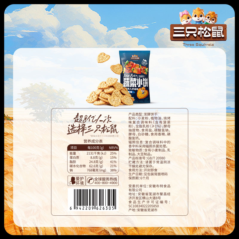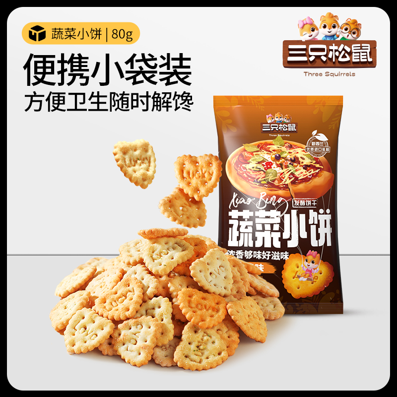 三只松鼠蔬菜小饼葱辣味80gx2休闲零食饼干 任选20件 专区99元