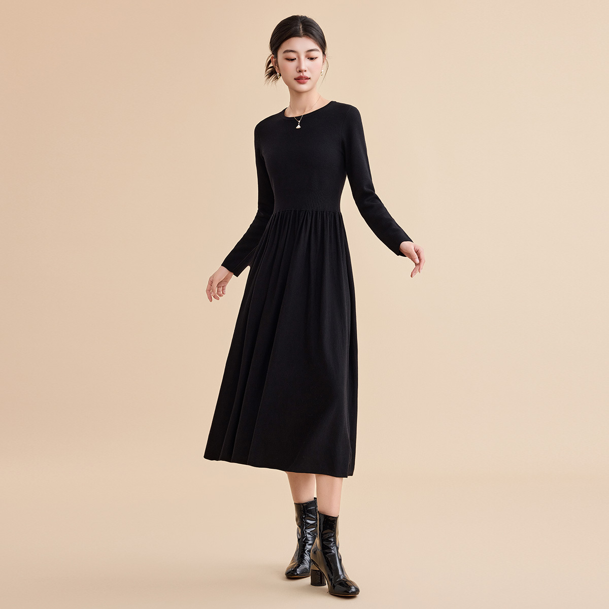LAGOGO赫本风收腰显瘦小黑裙女拉谷谷2025秋冬新款 内搭连衣裙 长袖