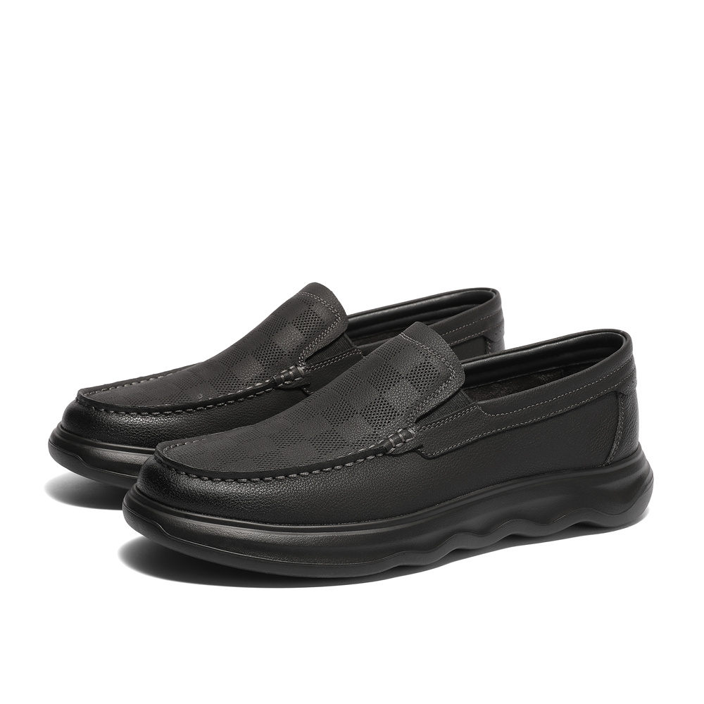父亲中年爸爸鞋 男士 子软底一脚蹬 真皮商务休闲透气皮鞋 意尔康男鞋